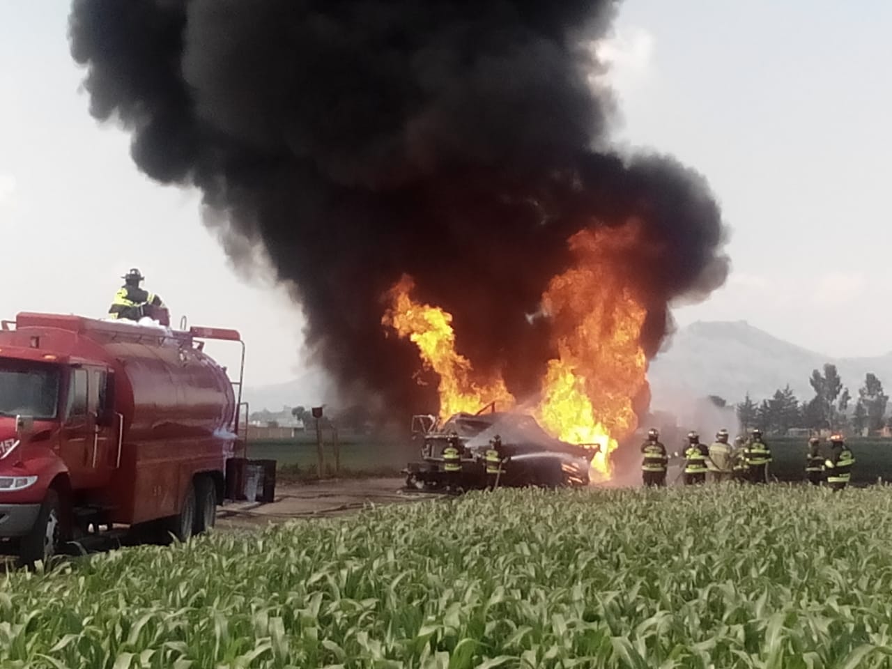 El incidente se reportó alrededor de las 5:30 horas cuando elementos de la Policía Municipal de Toluca recibieron un reporte en el que se les informaba de una fuerte explosión en las calles de Enrique Carniado y Revolución, en el poblado de San Carlos Autopan, al trasladarse al sitio agentes confirmaron que se trataba de un fuerte incendio en una zona de cultivos en el que ardía un camión por lo que de inmediato solicitaron la presencia del cuerpo de Bomberos municipales.