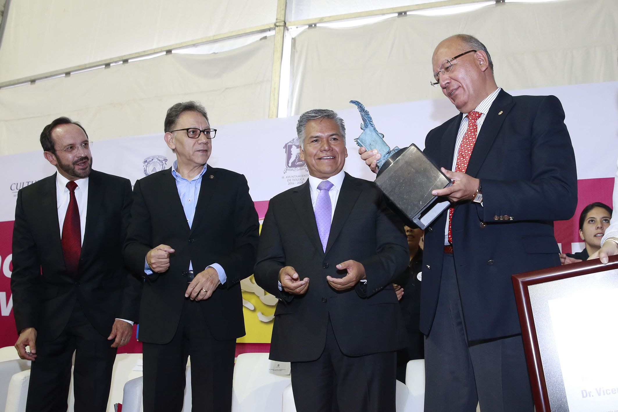 La lectura “nos obsequia el placer de imaginar otros mundos posibles, enriqueciendo nuestra experiencia de seres libres, reflexivos y comprensivos; leer nos permite aprender, pensar y sentir de manera amplia”, afirmó el rector de la Universidad Autónoma del Estado de México, Alfredo Barrera Baca, durante la inauguración de la edición 2017 de la Feria Internacional del Libro Estado de México. En la Plaza de los Mártires de la ciudad de Toluca, donde se dieron cita la directora general de Publicaciones de la Secretaría de Cultura del Gobierno Federal, Marina Núñez Bespalova; el secretario de Cultura mexiquense, Eduardo Gasca Pliego; el presidente municipal de Toluca, Fernando Zamora Morales, y el escritor Vicente Quirarte, Barrera Baca destacó el trabajo conjunto para llevar a cabo esta fiesta literaria.