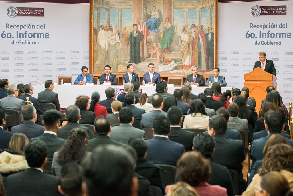 La 59 Legislatura del Estado de México recibió, a través del presidente de la Directiva, diputado Diego Eric Moreno Valle, el Sexto Informe de Resultados del gobernador Eruviel Ávila Villegas, que fue entregado por el secretario general de Gobierno, José Manzur Quiroga.En el acto de entrega-recepción, el presidente de la Junta de Coordinación Política, Cruz Roa Sánchez, destacó este ejercicio republicano y de rendición de cuentas, además de reconocer los logros alcanzados en los seis años de la administración mexiquense, que son también de los ciudadanos que apostaron por un gobierno humanista.
