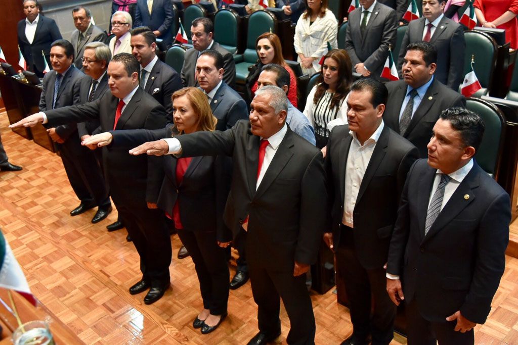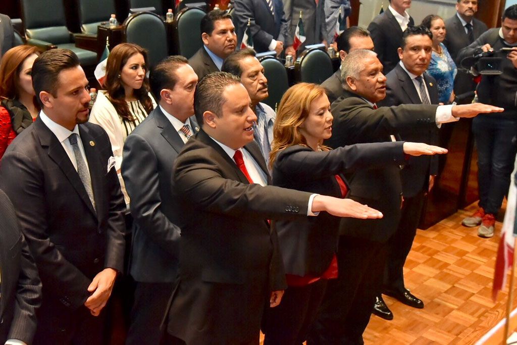 María Teresa Monroy Zárate, Christian Noé Velázquez Guerrero y Miguel Ángel Alcántara Herrera rindieron protesta como diputados de la LIX Legislatura del Estado de México en virtud de la licencia absoluta concedida el pasado 14 de septiembre a María Mercedes Colín Guadarrama, Raymundo Edgar Martínez Carbajal y Francisco Javier Eric Sevilla Montes de Oca.En sesión del Séptimo Periodo Ordinario que preside el diputado Diego Eric Moreno Valle (PRI), el Pleno legislativo también acordó modificar la integración de 11 comisiones legislativas y tres comités permanentes a fin de incorporar a los tres nuevos legisladores del PRI.