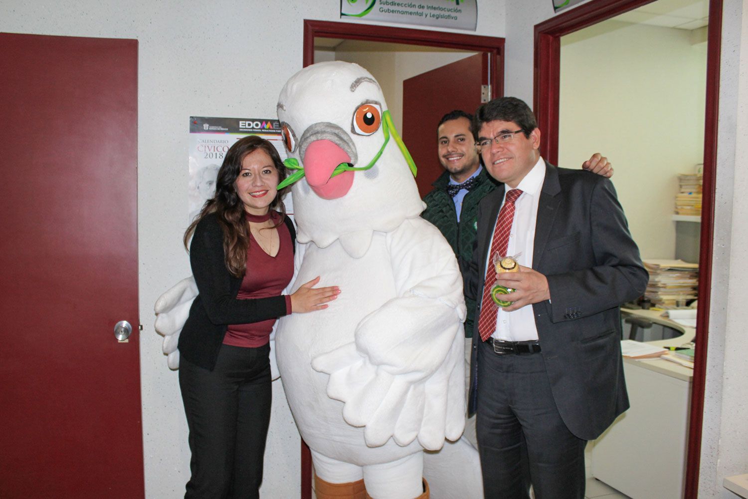 Toluca, México.- “Libertad”, la paloma que simboliza a la Comisión de Derechos Humanos del Estado de México (Codhem), entregó juguetes tradicionales de madera, como trompos, baleros y yoyos, para los hijos de los servidores públicos, a fin de celebrar el “Día del niño”.