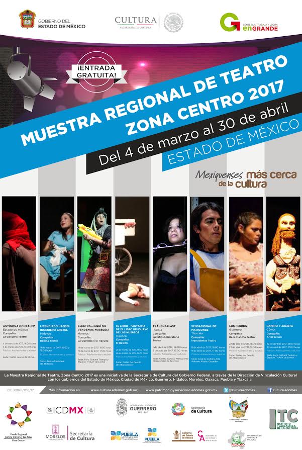 El Centro Cultural Mexiquense Bicentenario (CCMB) abre sus puertas a la Muestra Regional de Teatro el 1 y 2 de abril, evento realizado por la Secretaría de Cultura a través del Gobierno del Estado de México y la Secretaría de Cultura mexiquense, impulsando así, el talento nacional y el gusto por las nuevas propuestas de las artes escénicas.El Fondo Regional para la Cultura y las Artes de la Zona Centro es el encargado de organizar la muestra en la que se presentan obras de teatro con compañías de Tlaxcala, Ciudad de México, Oaxaca, Puebla, Guerrero, Morelos, Hidalgo y Estado de México.