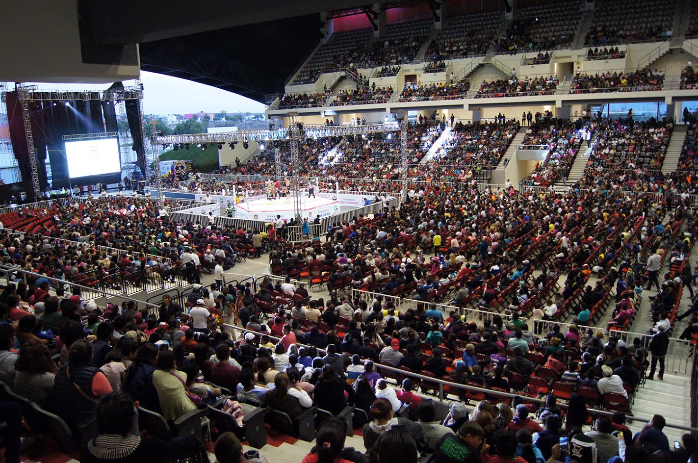En un auditorio que abarrotaron más de 10 mil personas, el público disfrutó de cinco encuentros, algunos incluso tenían puestas las máscaras de su luchador favorito y mostraban su fanatismo en cada encuentro.