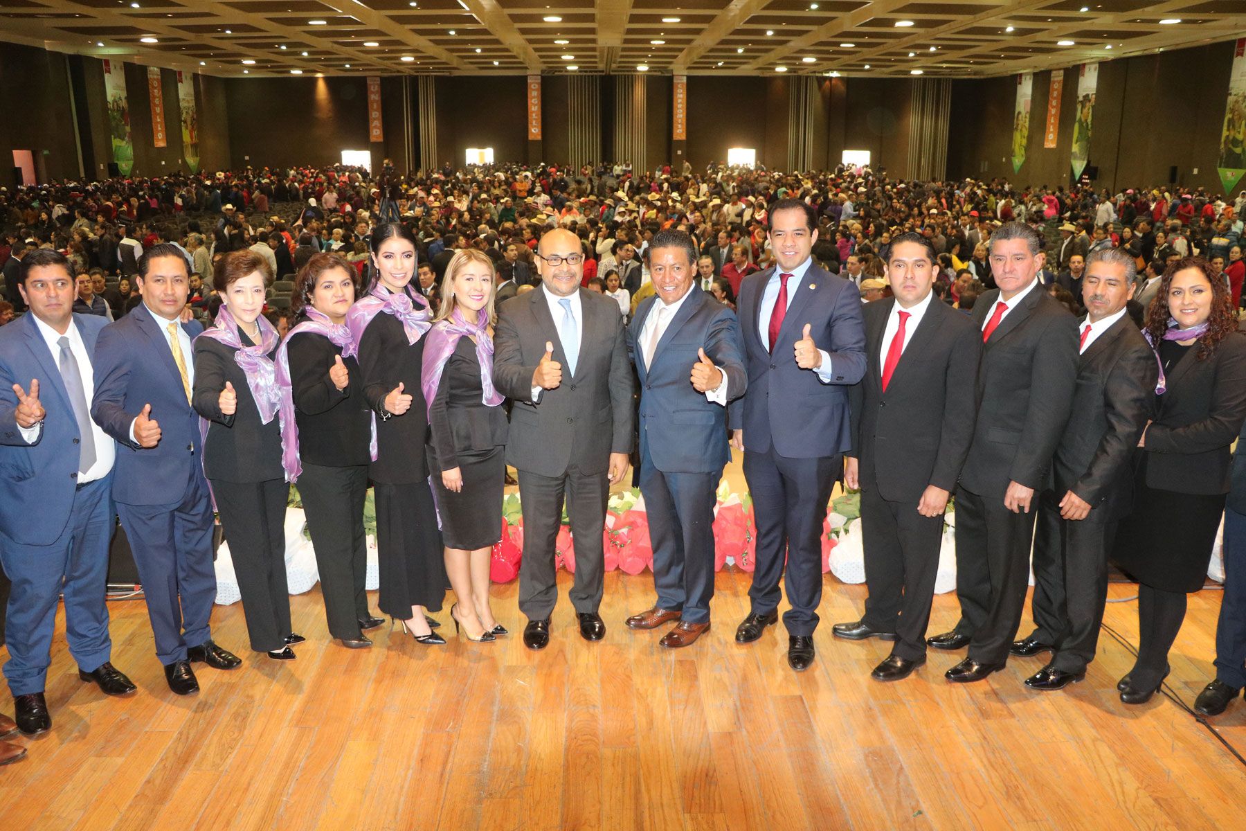 Durante el magno evento acompañaron al presidente; la alcaldesa de Texcaltitlan, Zoila Huerta Loza; integrantes de cabildo en pleno; Olga Esquivel Hernández, diputada federal por el distrito 40; Aidé Flores Delgado, diputada local; Hersson Castrejón Gómez, presidente del Sistema DIF municipal; los ex presidentes municipales, Guillermo Arguelles, José James García, autoridades eclesiásticas, clase política de Zinacantepec, así como más de seis mil vecinos y autoridades auxiliares.