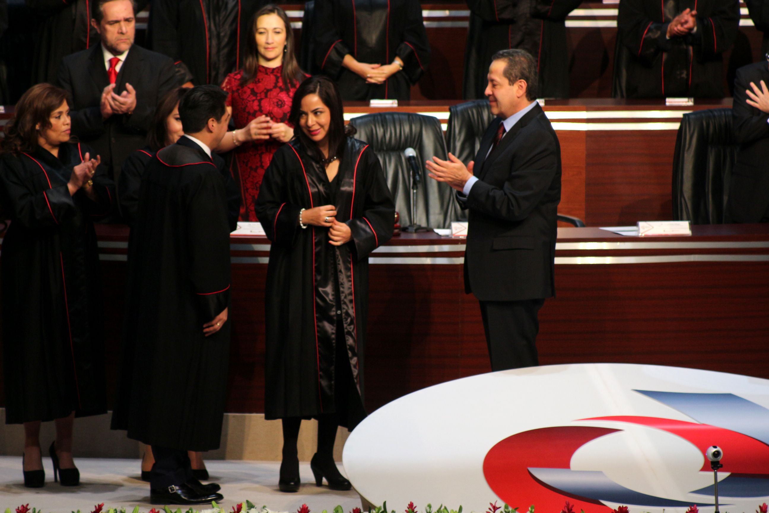 No obstante, según la Universidad de las Américas hay una deficiencia estructural del Sistema de Justicia, pues se estima una proporción promedio internacional de 16 jueces por cada 100 mil habitantes, situación que se agudiza en el Estado de México con tan sólo 2.3 jueces por cada 100 mil habitantes, lo que si bien revela la necesidad de incrementar el número de juzgadores, también prueba el alto compromiso de quienes aportan todos los días su talento en beneficio del Estado de México: Muchas gracias a nuestros 400 jueces mexiquenses.