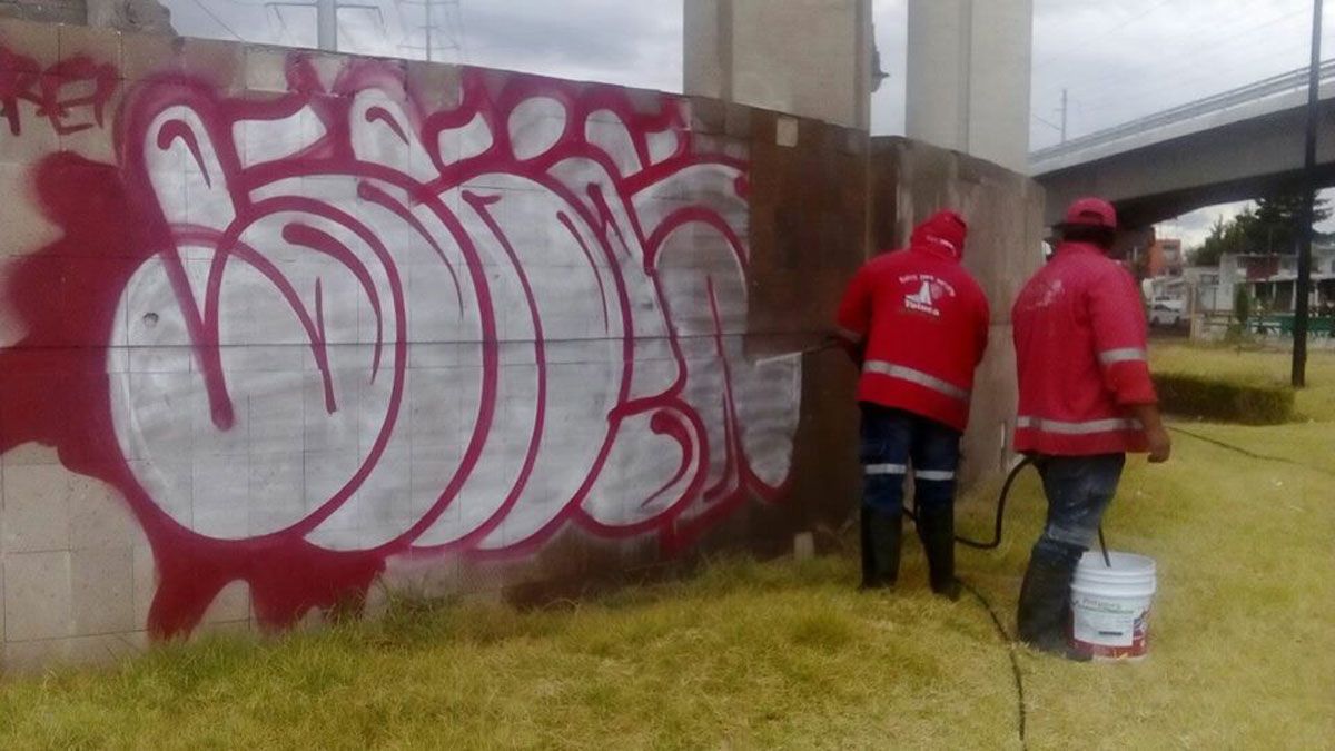 Toluca, Estado de México.- A fin de conservar en buen estado los 69 monumentos, 9 plazas y 54 fuentes que forman parte del patrimonio cultural e histórico de Toluca, a través de la Dirección de Servicios Públicos el gobierno de la capital realiza de manera permanente labores de mantenimiento y retiro de grafiti, que en 2017 alcanzaron más de 2 mil 300 metros cuadrados y en este año suman casi 900 metros cuadrados.