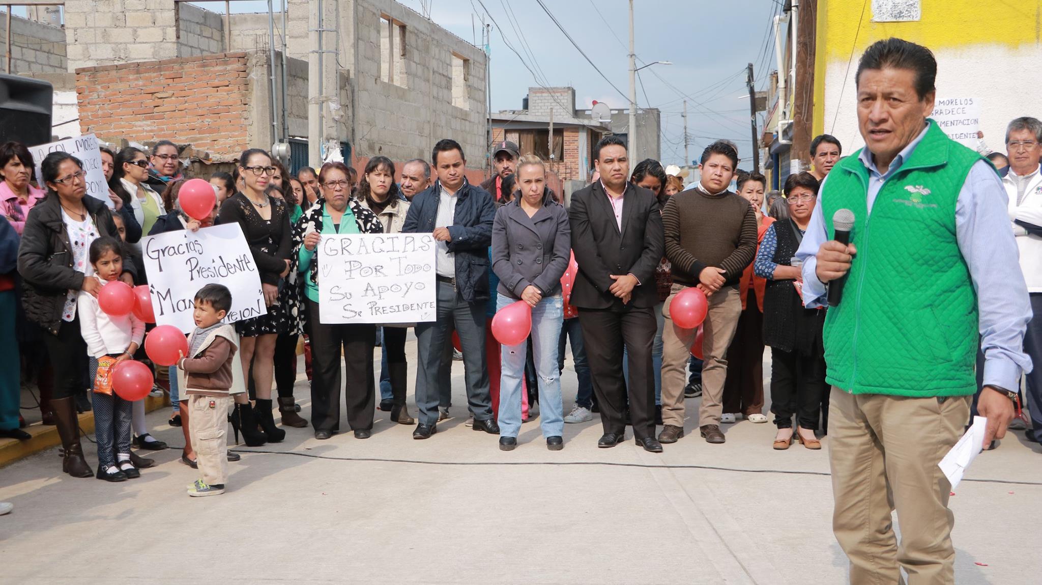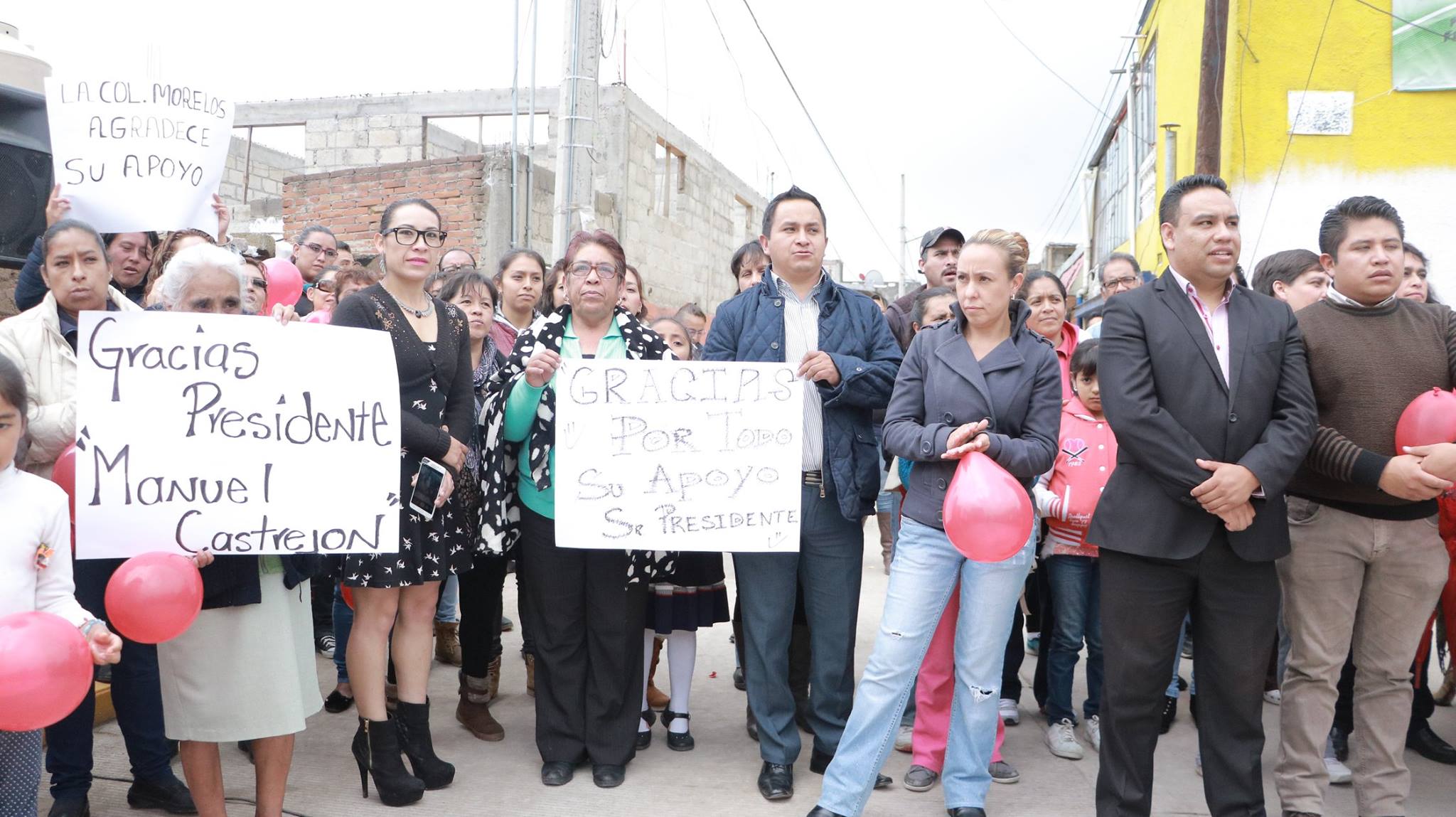 Con el fin de llevar obras de infraestructura vial a todas las comunidades de Zinacantepec, el presidente municipal, Manuel Castrejón Morales, inauguró dos importantes obras, en las que se invirtieron cerca de dos millones de pesos, beneficiando a más de dos mil 300 ciudadanos de las localidades de Santa Cruz Cuauhtenco y Colonia Morelos.En este sentido, Manuel Castrejón, durante la inauguración de mil 479 metros cuadrados de “Pavimento con concreto hidráulico de la calle Benito Juárez entre Adolfo López Mateos y calle José María Pino Suarez” de Santa Cruz Cuauhtenco, indicó que “Lo que se ha logrado en esta comunidad es gracias a la organización y trabajo de ustedes para mejorar su pueblo” puntualizó.