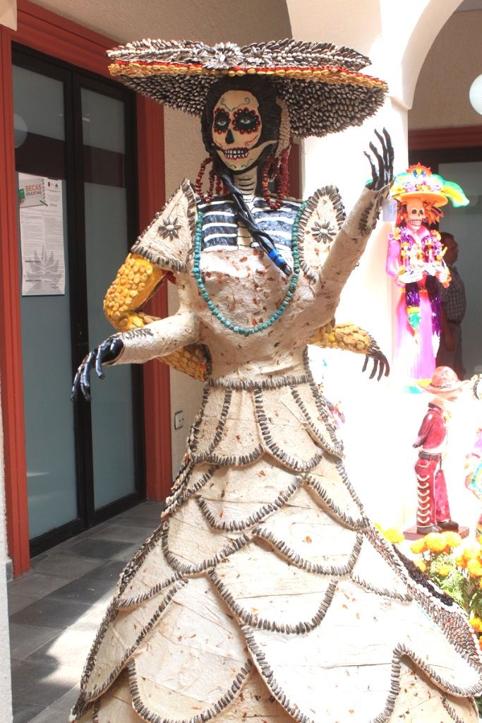 Como parte de las actividades conmemorativas que lleva a cabo el gobierno de Metepec con motivo del Día de los Difuntos, está expuesta en el edificio del Ayuntamiento, una colección de 41 obras de arte dedicadas a la mítica figura de la Catrina que hiciera popular el maestro grabador y dibujante de Aguascalientes, José Guadalupe Posada.La exposición consta de 8 figuras elaboradas en barro natural y 5 en color; 17 de papel, 8 miniaturas, y una de semilla, vitral y cuadro en papel, todas elaboradas por distinguidos maestros del arte popular de Metepec quienes concursan con sus piezas en el certamen municipal “Catrin Arte 2016”.