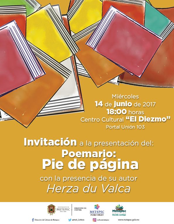 El gobierno de Metepec continúa impulsando actividades de cohesión social a través de la Cartelera Cultural Permanente, que este mes lo dedica al fomento de la apreciación y creación literaria.De la Ciudad de México visitará el municipio la destacada poeta y artista visual, Herza Du Valca, quien compartirá su amplia trayectoria que mezcla el gusto por la literatura y su sensibilidad como creador plástico.