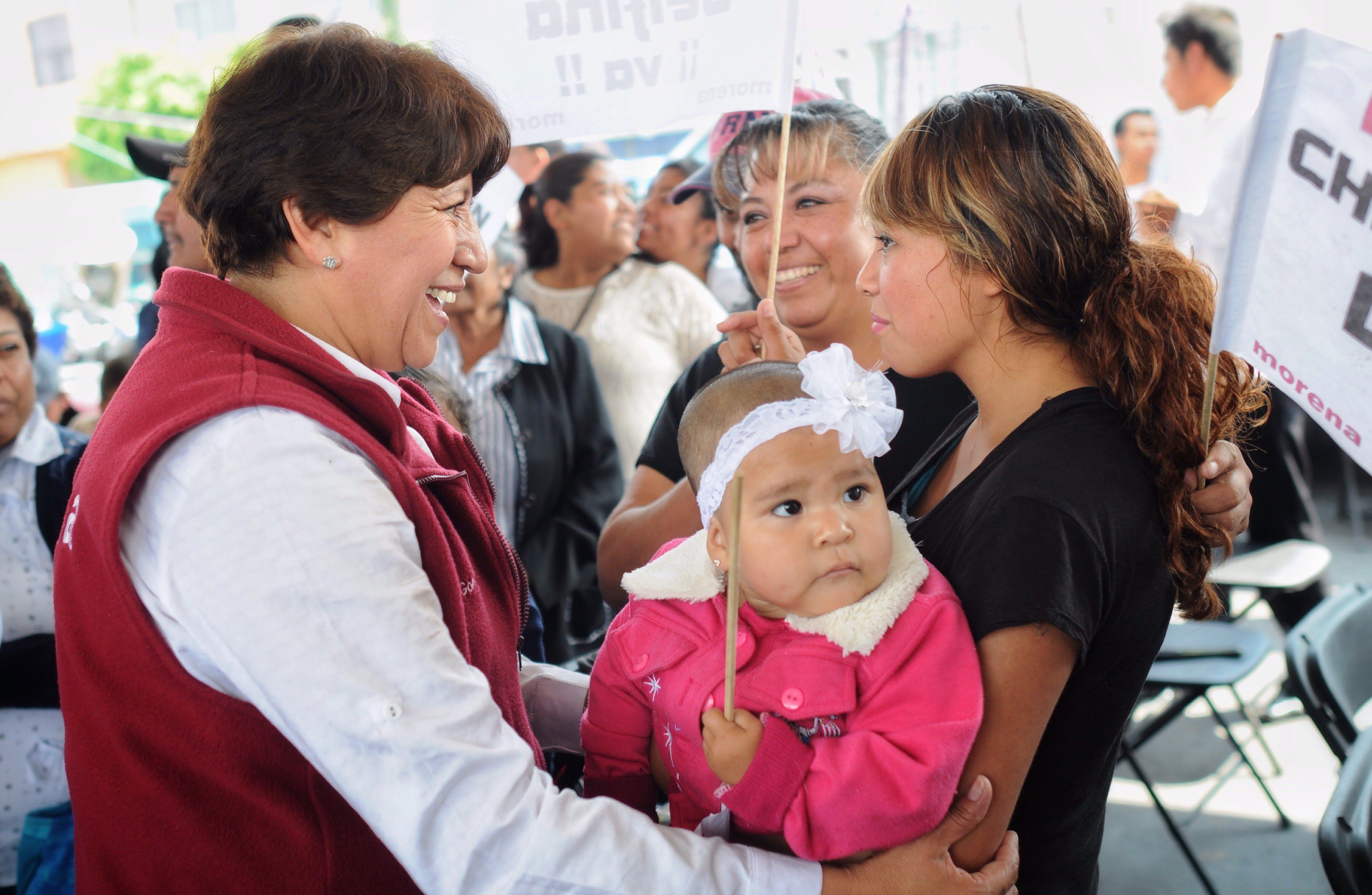 CHIMALHUACÁN, ESTADO DE MÉXICO.- La maestra Delfina Gómez, candidata de MORENA a Gobernadora del Estado de México dijo que su partido le apuesta a las mujeres y, con su apoyo, ganará la elección del 4 de junio y acabarán 86 años de gobiernos corruptos del PRI.En un desayuno con mujeres por el Día de las Madres les expresó su reconocimiento y dijo que todavía hay una deuda fuerte con las mujeres. Recordó “a las que no están en estas fechas por los feminicidios” y, al ofrecer que habrá justicia para las víctimas señaló: “no queremos ni una muerta más”.