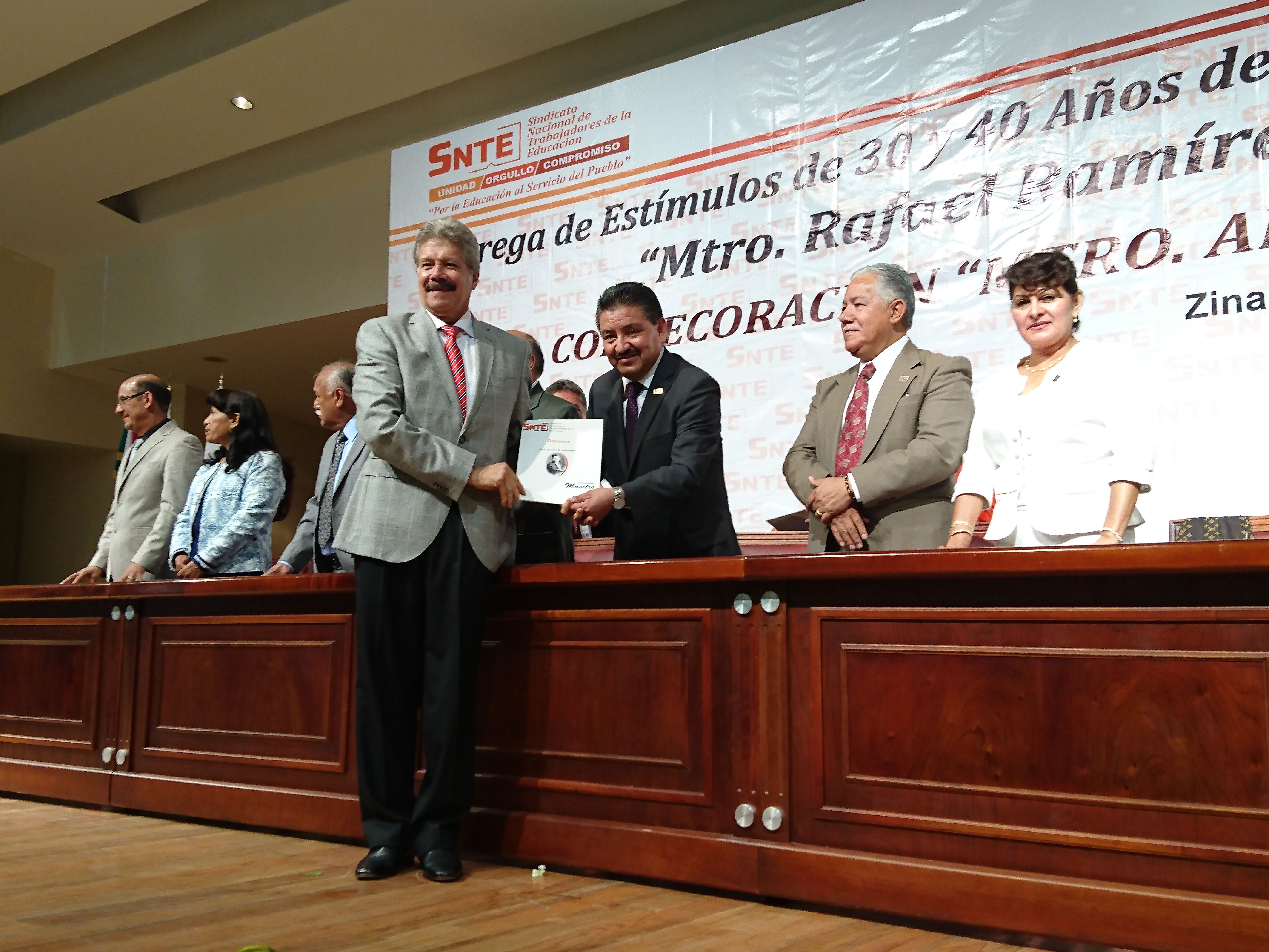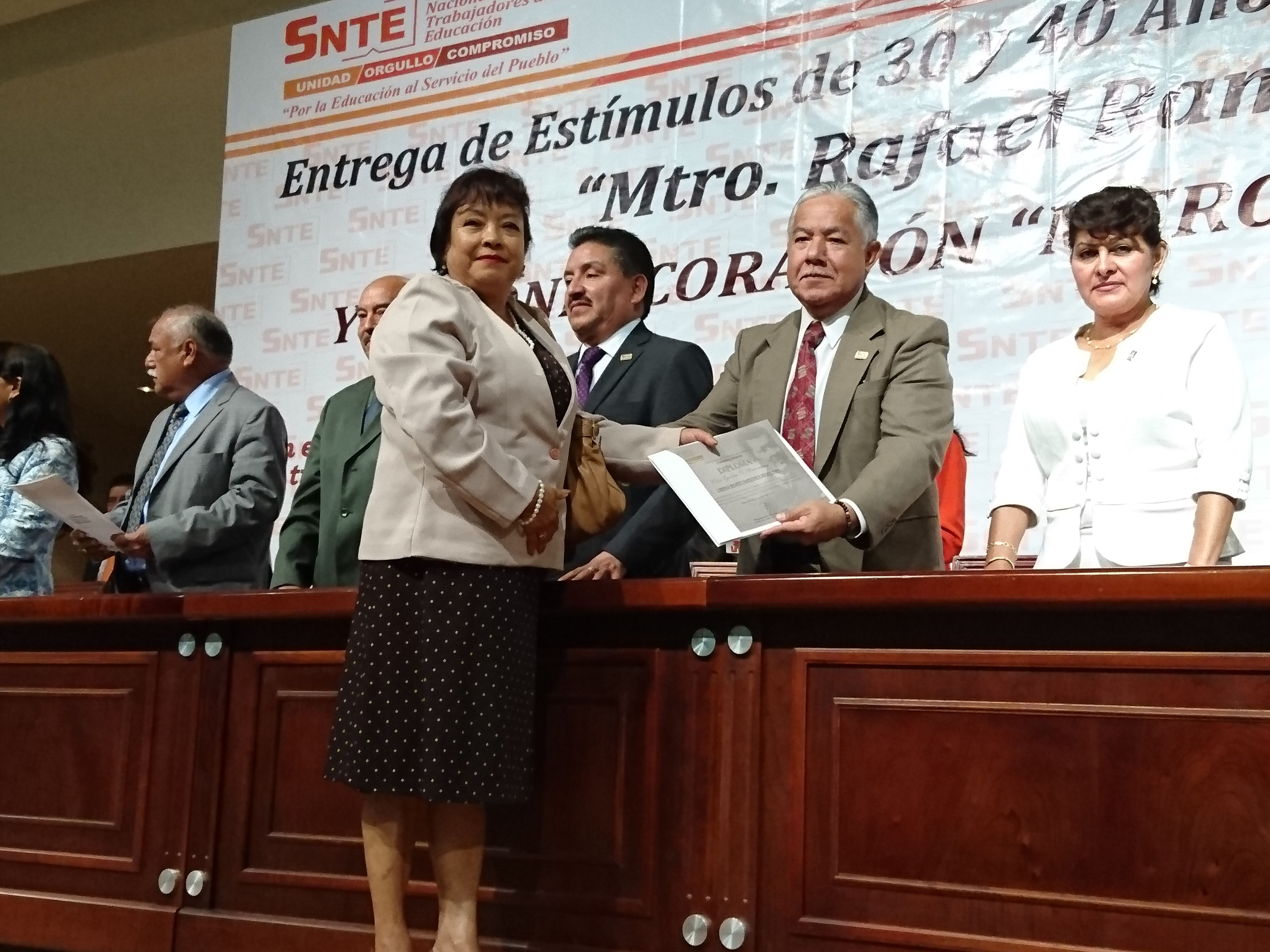 Durante la entrega de Estímulos de 30 y 40 años de Servicio Docente “Maestro Rafael Ramírez” y la condecoración “Maestro Altamirano”, Gustavo Michua y Michua, secretario general de la Sección 17 Valle de Toluca del Sindicato Nacional de Trabajadores de la Educación, dijo que este sector del magisterio seguirán siendo los actores esenciales para mantener la unidad de los trabajadores de la educación, “y por quienes no debemos permitir que haya retrocesos en las conquistas”.MIchua y Michua, refirió que todos los que cumplieron 30 o 40 años de servicio no se imaginaban el escenario que actualmente se está viviendo, pues durante décadas se acostumbraron a un estado de las cosas, en el que incluso, no ha permitido superar la crisis que vivimos como consecuencia de las reformas estructurales impulsadas por el ejecutivo federal en el 2012.