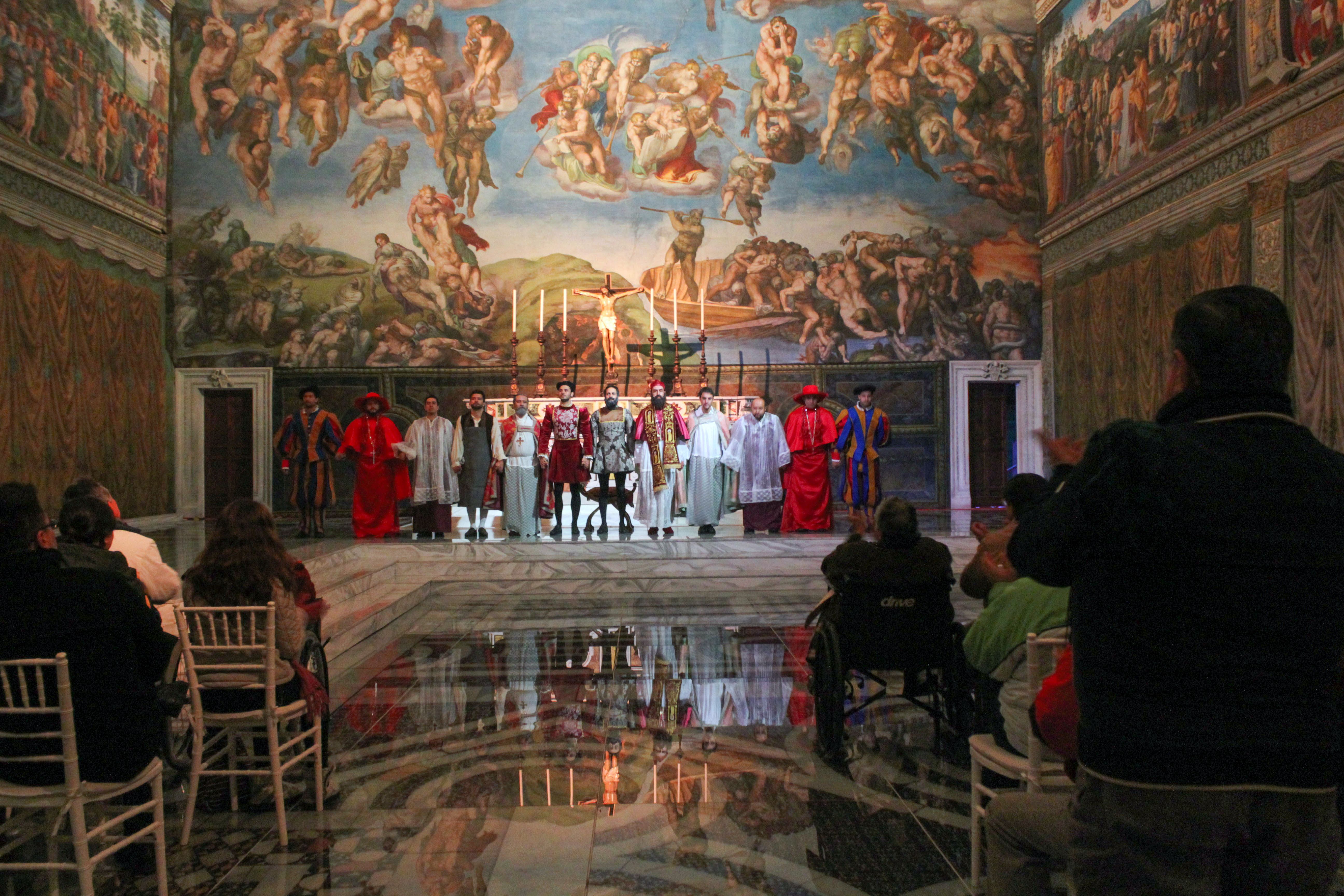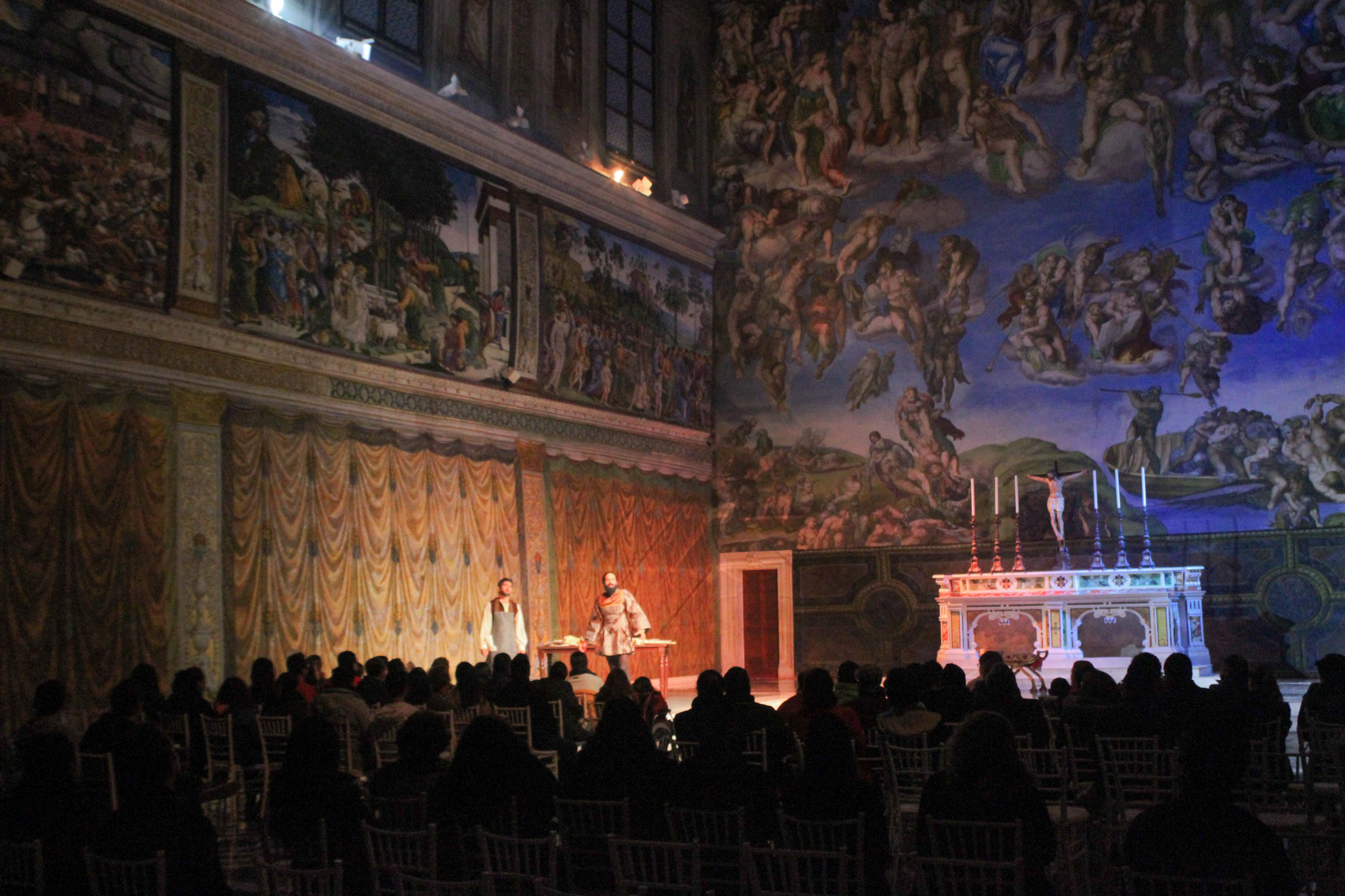 La recreación de los momentos en que el artista Miguel Ángel Buonarrooti pintó la bóveda de la Capilla Sixtina, puede ser apreciada en la puesta en escena “Noches de la Sixtina”, que se presenta en la réplica de este espacio que se localiza en la Plaza de los Mártires de Toluca.La obra representada en un 80 por ciento por artistas locales, se divide en tres etapas: en la primera se presenta el conflicto del artista Miguel Ángel Buonarroti con el Papa Julio II, quien le pide pintar la capilla de la Basílica de San Pedro; en la segunda parte se explican los problemas que tuvo el artista, quien no se sentía preparado como pintor pues sólo había realizado esculturas, y en la tercera etapa se muestra como el Papa Clemente VII lo elige para pintar el Juicio final.