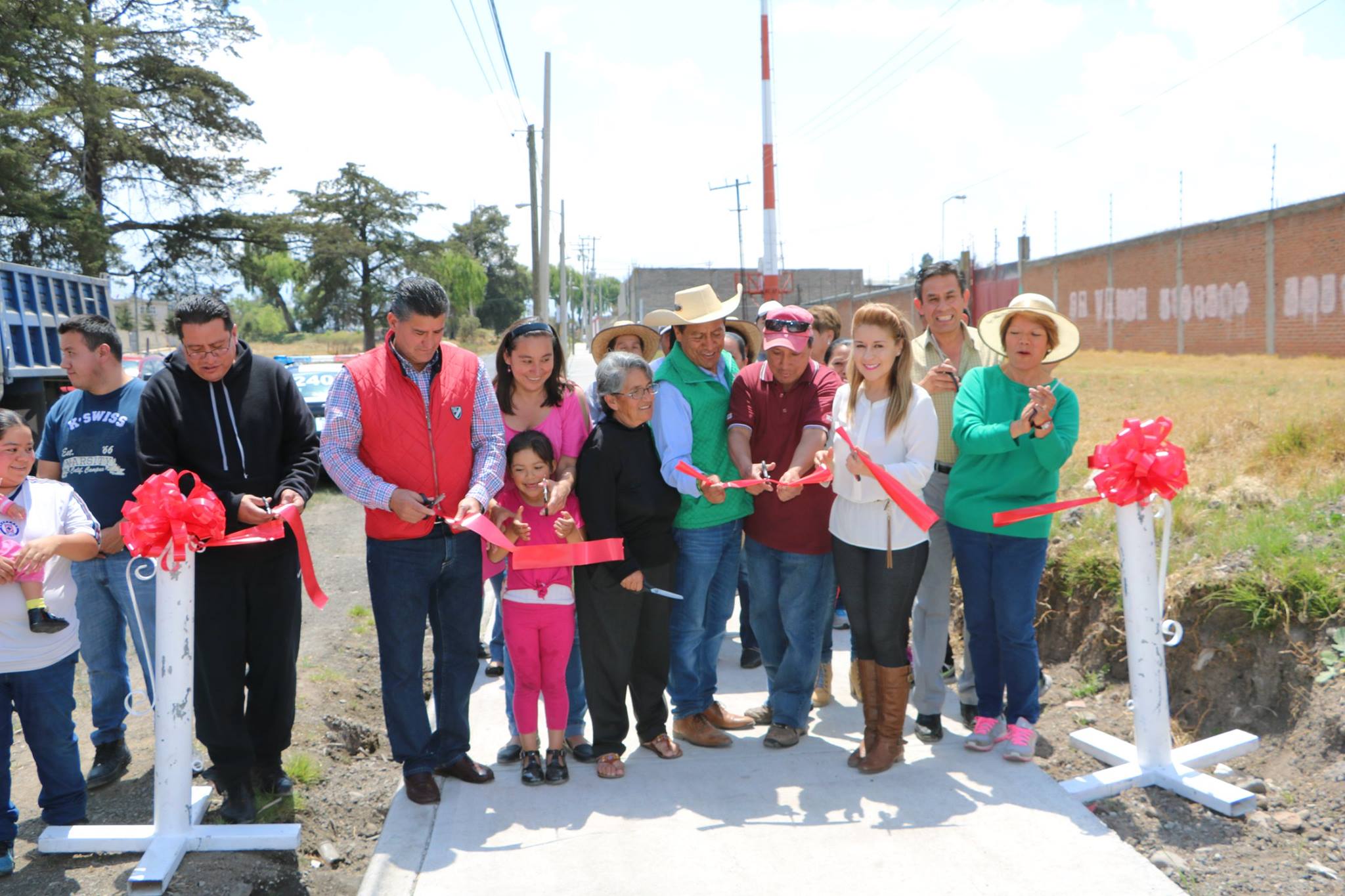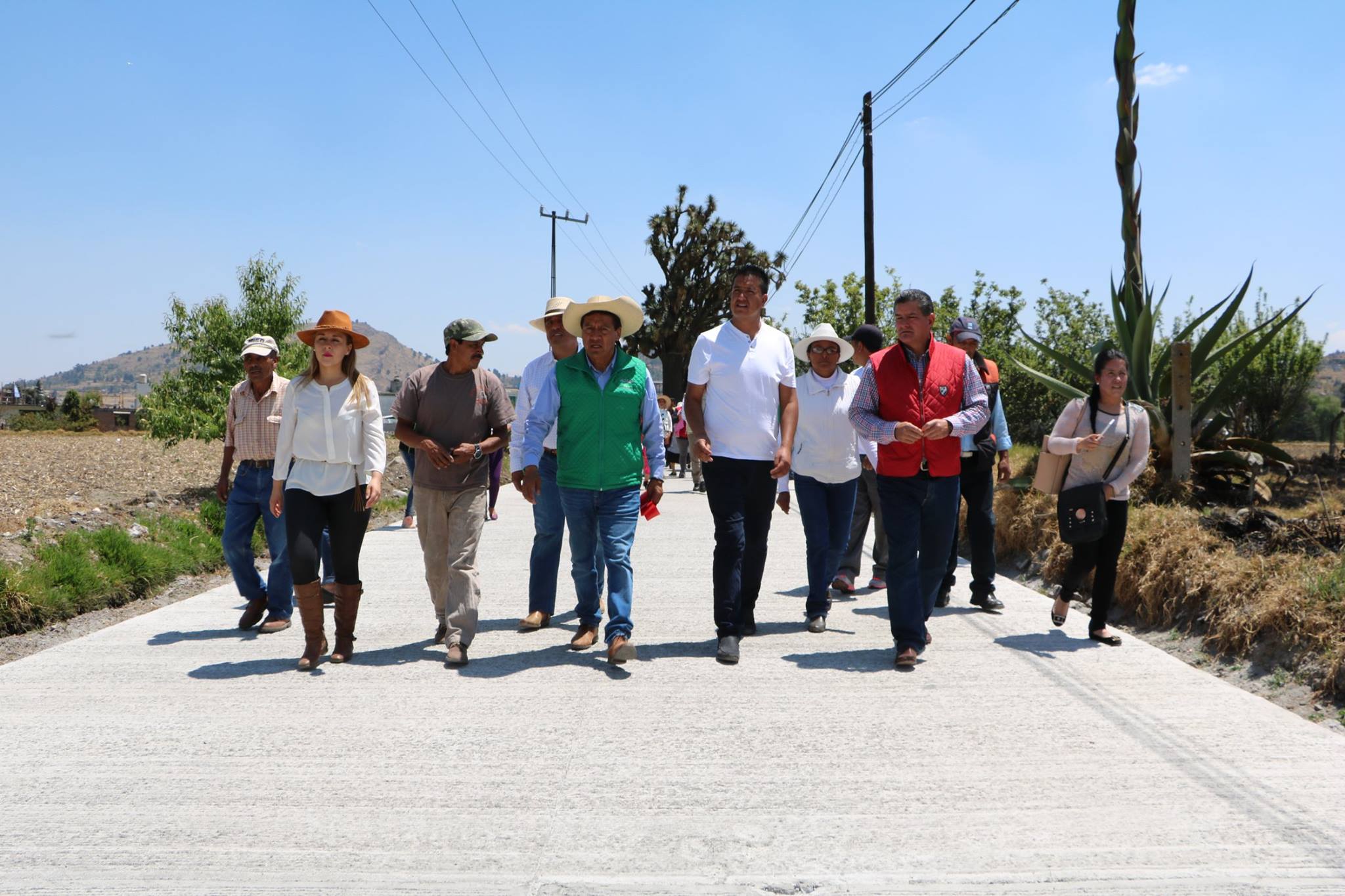 Durante la gira, el alcalde corto el listón inaugural de 736 metros cuadrados de pavimentación con concreto hidráulico del Camino Real a Santiaguito en Santa María Nativitas, obra que tuvo una inversión de 510 mil pesos, la cual beneficiará directamente a 400 personas.