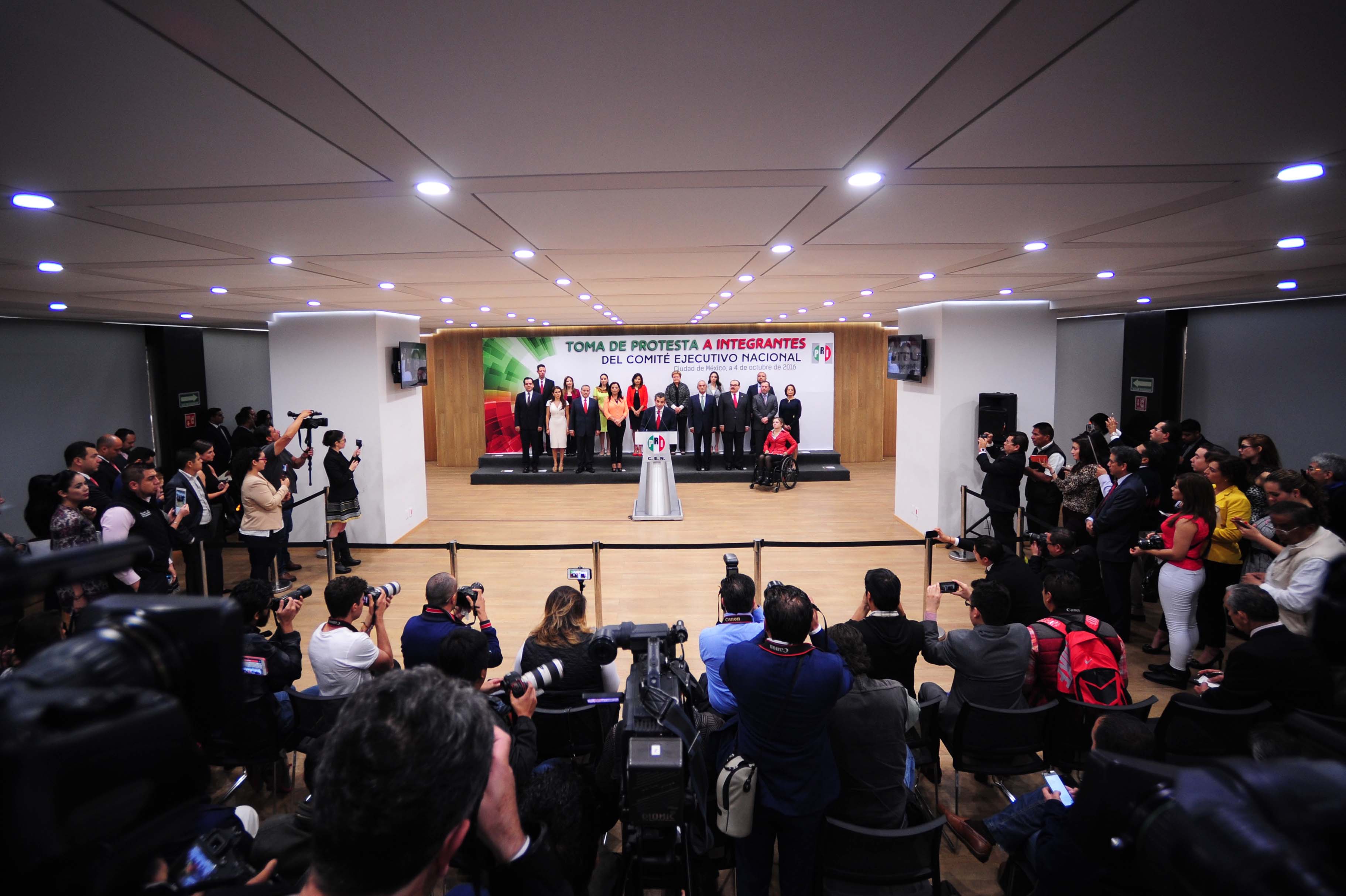 El presidente del Partido Revolucionario Institucional, Enrique Ochoa Reza, tomó protesta hoy a los integrantes del Comité Ejecutivo Nacional del PRI que culminarán el periodo estatutario 2015-2019, el cual, de acuerdo a su compromiso, fue conformado con una representatividad regional, generacional y con paridad de género.En el salón “Alfonso Reyes” de la sede priista y en compañía de la secretaria general del tricolor, diputada Carolina Monroy, entregó sus nombramientos a 14 destacados militantes, ocho mujeres y seis hombres, originarios de diversas entidades federativas del país, a quienes se refirió como “gente trabajadora, honesta y preparada”.