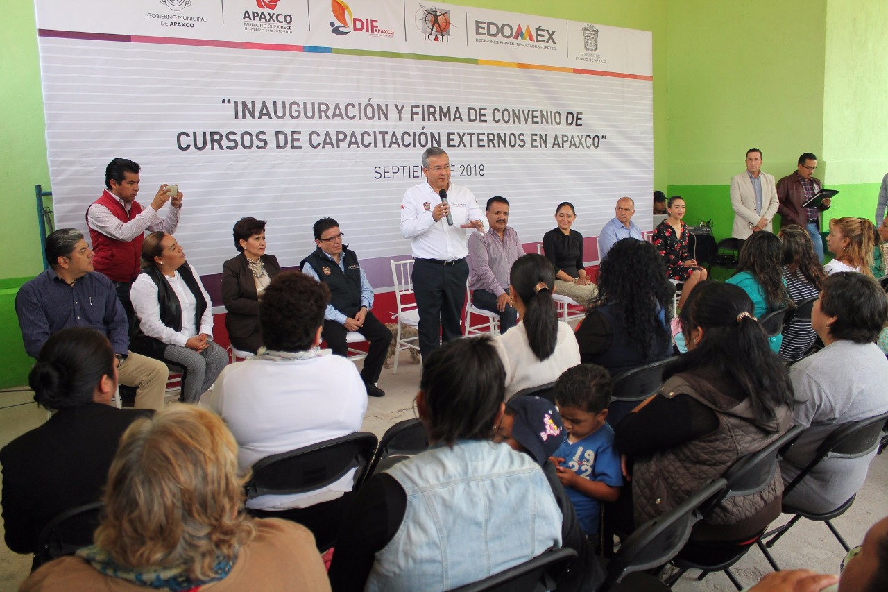 Apaxco, Estado de México, 7 de septiembre de 2018. El Instituto de Capacitación y Adiestramiento para el Trabajo Industrial (ICATI) se confirma como el sistema educativo más grande en su tipo a nivel nacional, expresó el Secretario del Trabajo, Ignacio Rubí Salazar, durante la firma del convenio con el Sistema Municipal para el Desarrollo Integral de la Familia (DIF), para abrir una Unidad de Capacitación Externa.