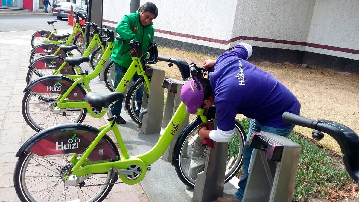 Toluca, Estado de México.- Las 26 ciclo estaciones y 350 bicicletas que conforman el Sistema de Bicicleta Pública Huizi funcionan al cien por ciento, dicho sistema cuenta con mecánicos y personal capacitado que todos los días realizan recorridos de supervisión y mantenimiento en cada punto, como los ubicados en Nigromante, Independencia, Primero de Mayo, 5 de Mayo, Josefa Ortiz, Matamoros, Pino Suárez, Juan Álvarez, Alameda Central, Cosmovitral, El Ranchito, Salón del Agua, EL Calvario, La Merced y Conservatorio, por mencionar algunos.