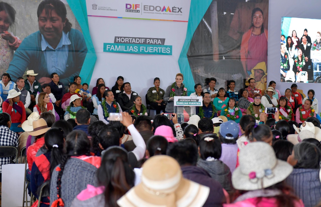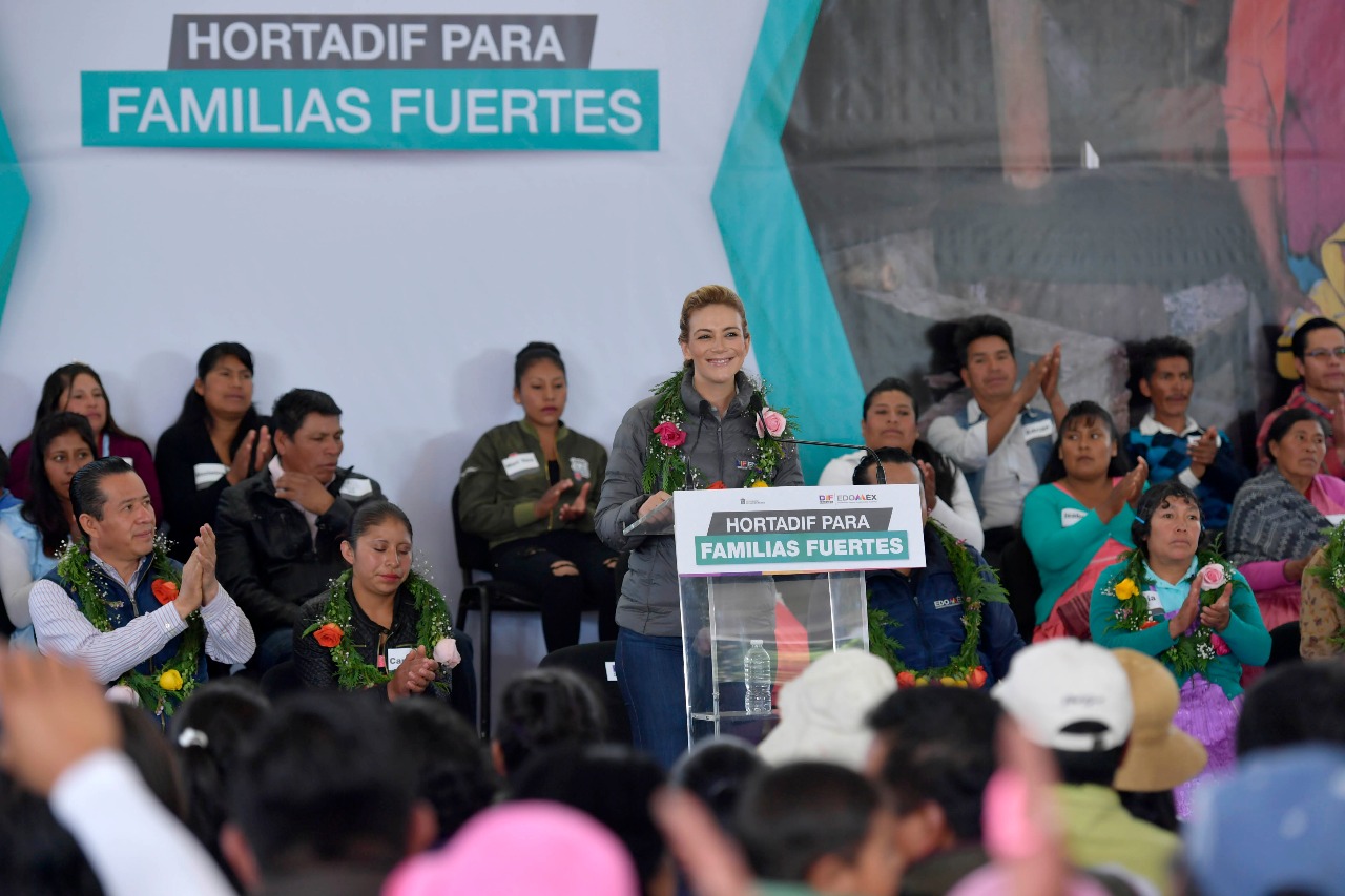 Durante su visita a la comunidad de San Antonio del Rincón, en Villa Victoria, Fernanda Castillo detalló que dicha estrategia permitirá en una primera etapa la instalación de 46 microproyectos HortaDIF en 11 localidades otorgando a mil 294 familias aves, conejos, microtúneles o huerto y un comedor comunitario en un lugar estratégico, materiales de construcción, estufas ecológicas y baños secos.