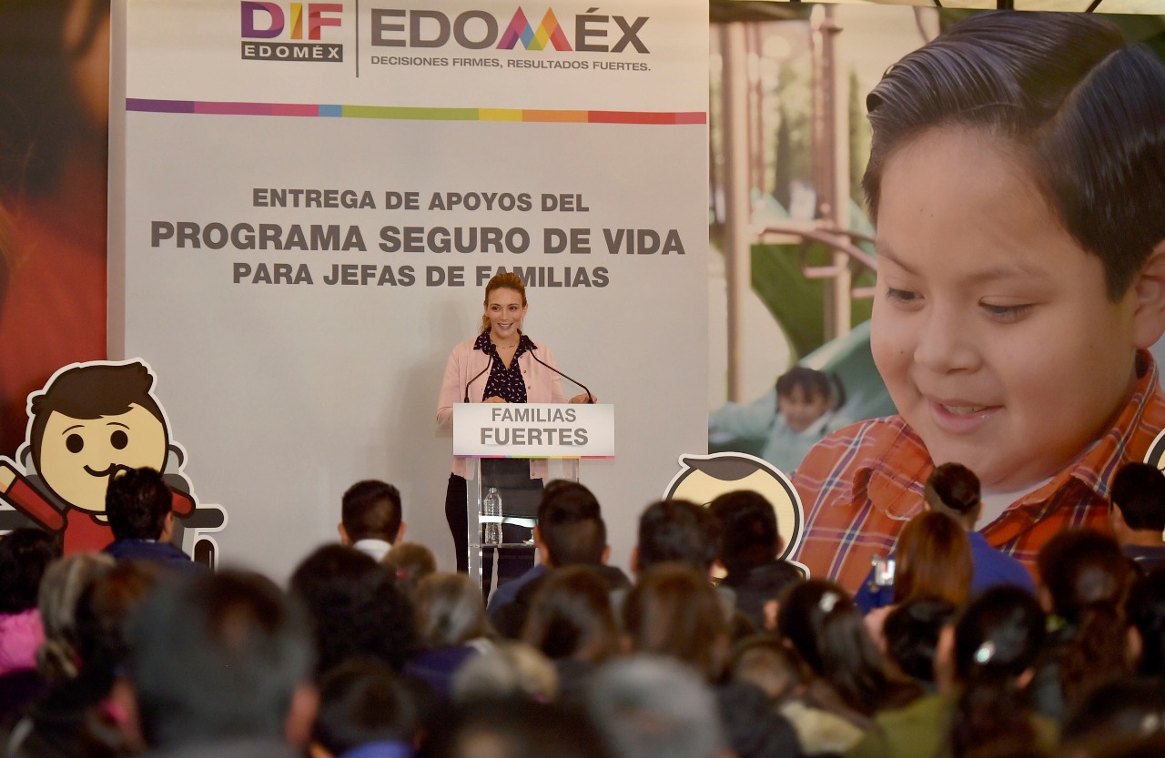 En este sentido, Fernanda Castillo de Del Mazo, Presidenta Honoraria del DIF estatal, en compañía de Evelyn Osornio Jiménez, Delegada federal de la Secretaría de Desarrollo Social (Sedesol) en el Estado de México, así como Miguel Ángel Torres Cabello, Director General del DIFEM, entregó el beneficio a tutores a cargo del cuidado, manutención y alimentación de niños, adolescentes y jóvenes menores de 24 años de edad en orfandad materna.