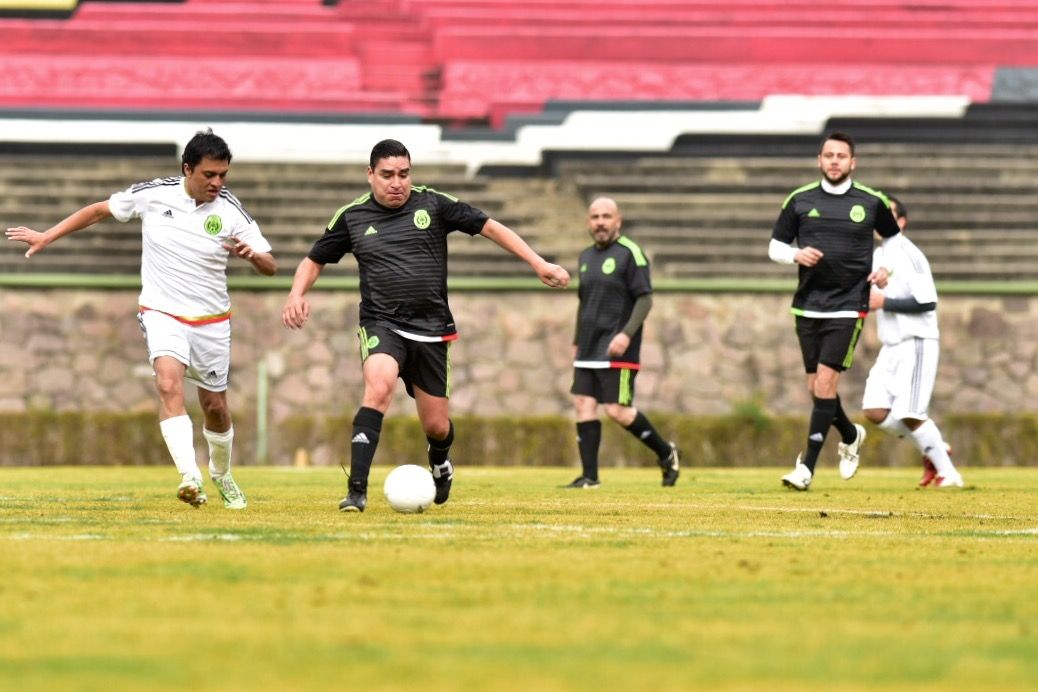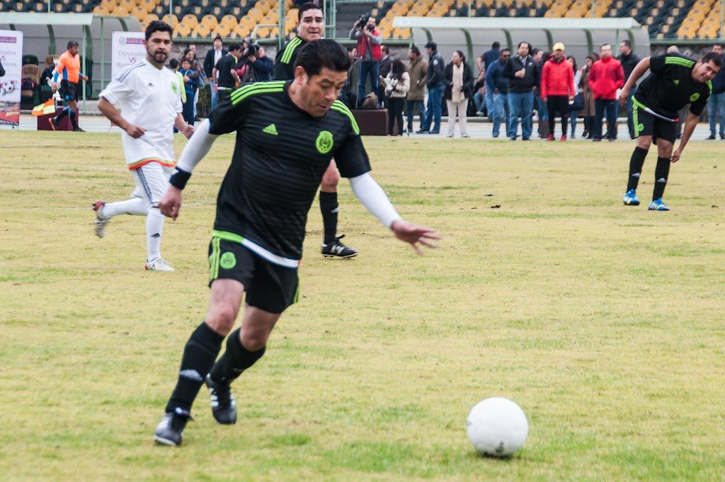 Los diputados, uniformados con el jersey negro y verde de la selección mexicana, así como los periodistas, con la indumentaria blanca del cuadro azteca, hicieron ajustes rumbo al segundo tiempo, en el que ambos se lanzaron al frente en busca de la ventaja.