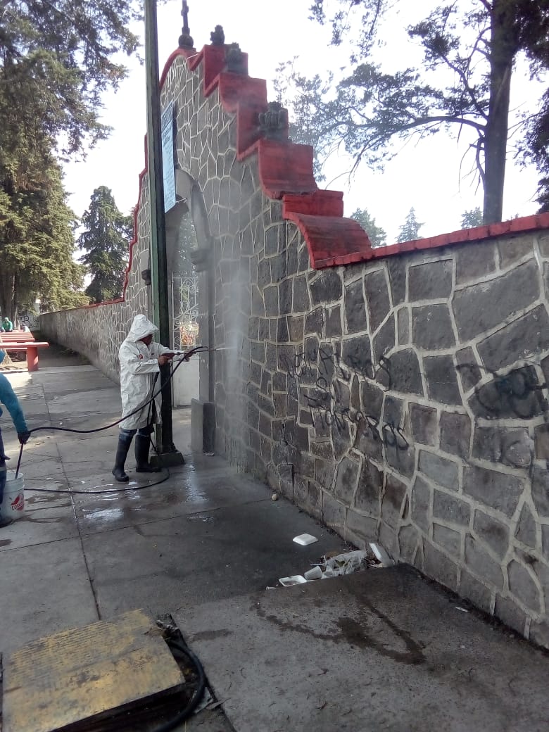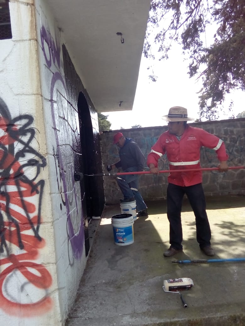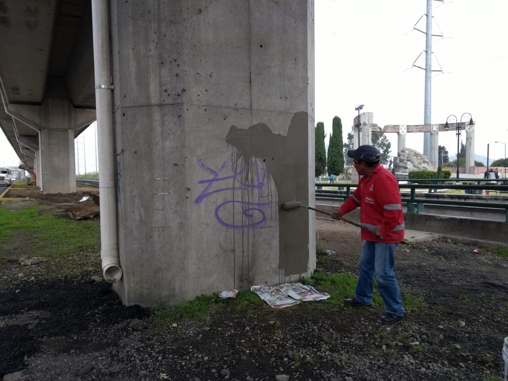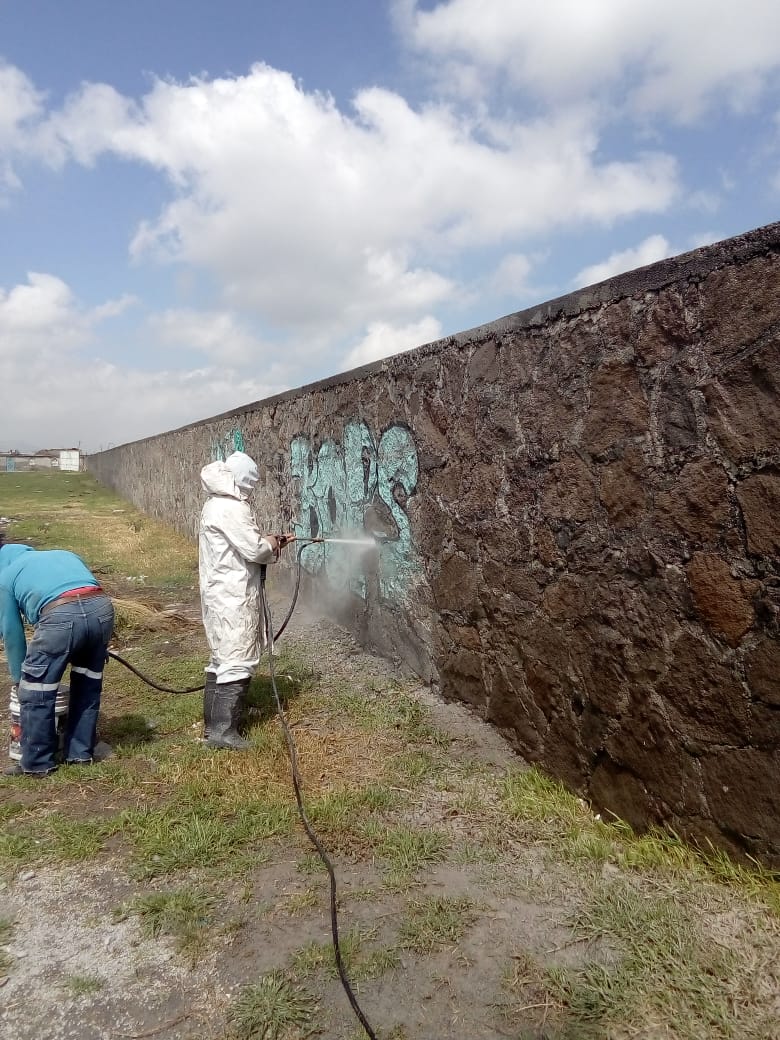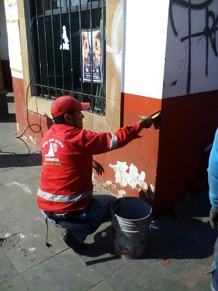 Los trabajos incluyen limpieza de la superficie afectada, barrido y retiro de escombro, aplicación de pintura nueva en bardas de instituciones educativas y edificios públicos, trabajo que se ha realizado en delegaciones como San Pedro Totoltepec, San Felipe Tlalmimilolpan, San Pablo Autopan, Centro Histórico, San Cristóbal Huichochitlán, La Maquinita, Santa María de las Rosas, Santa Ana Tlapaltitlán y Parque Alameda Norte, entre otras.