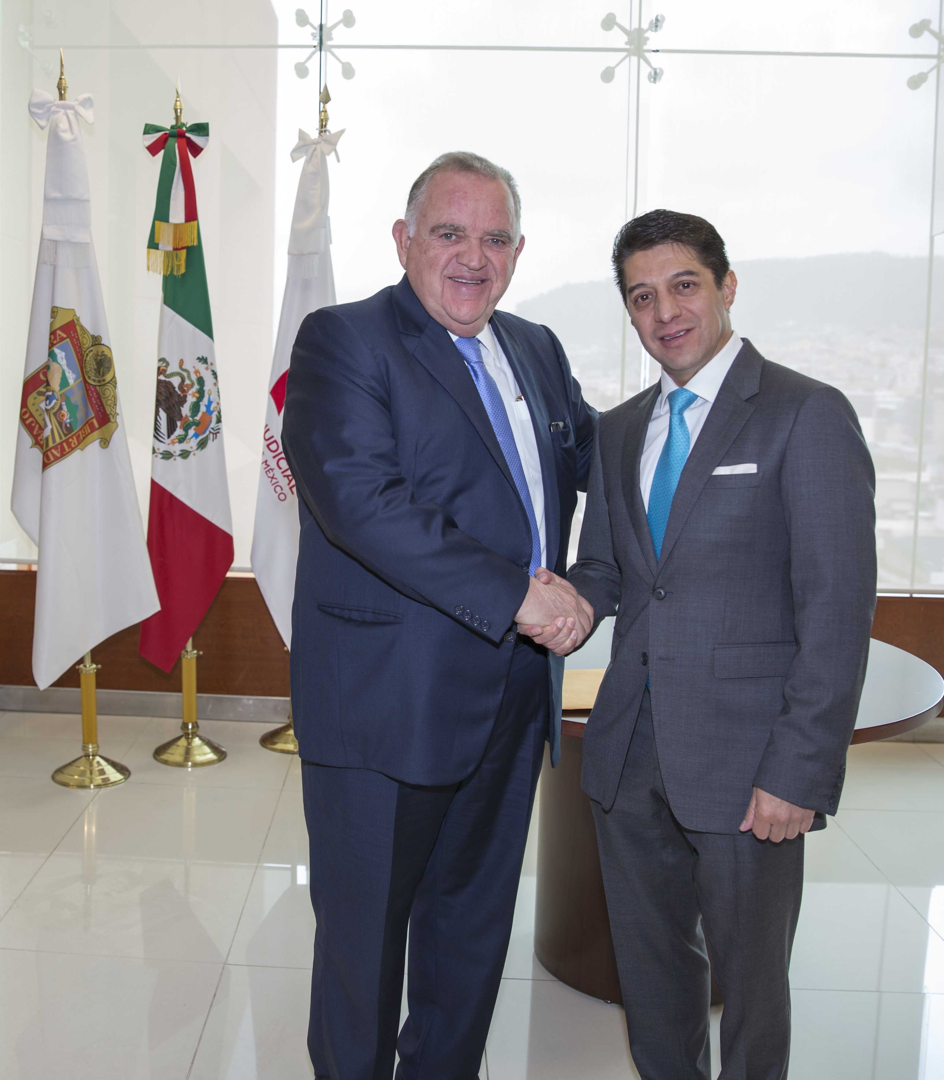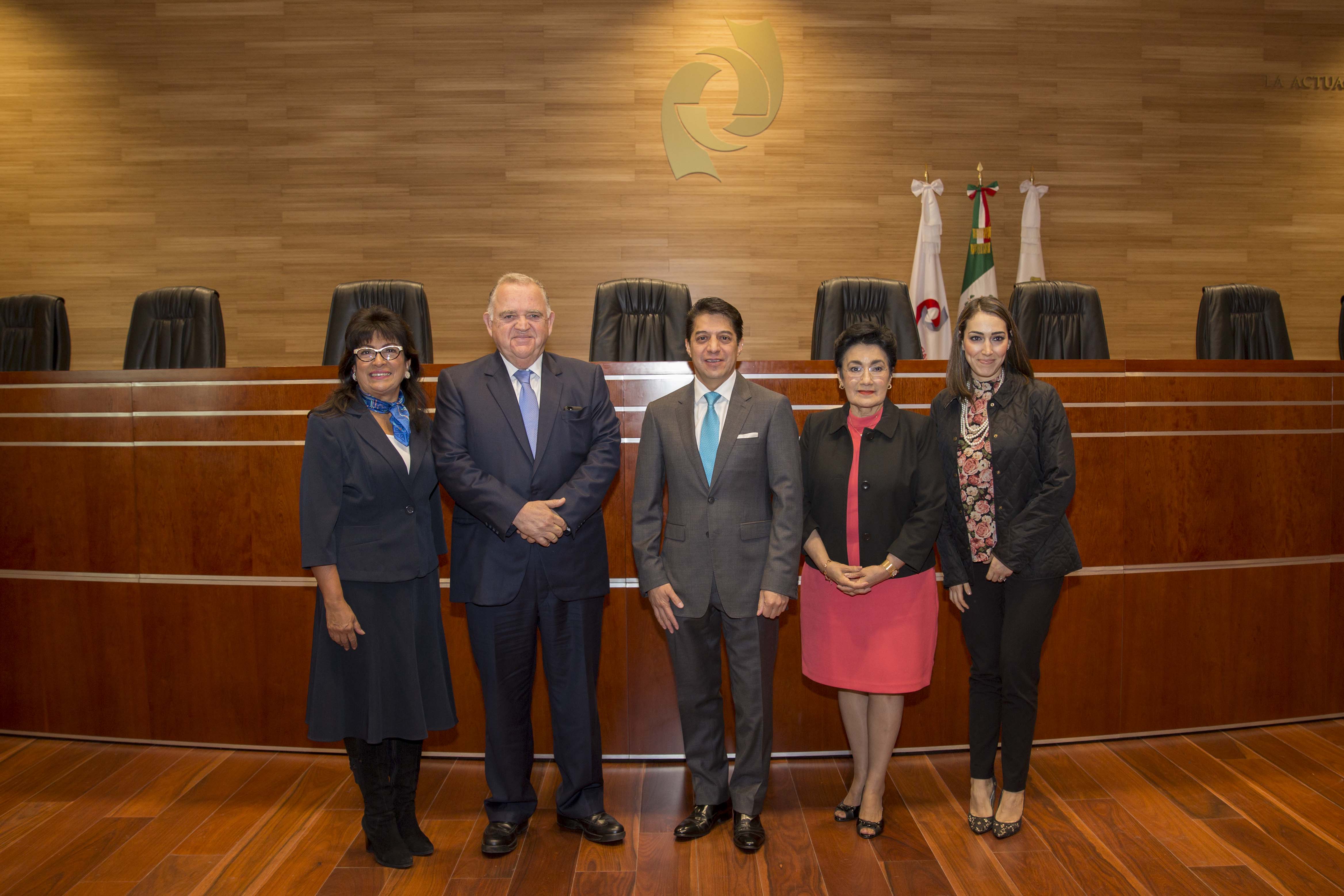 Por la experiencia que el Poder Judicial del Estado de México tiene en lo referente a Centros de Convivencia Familiar y envío de exhortos electrónicos, el magistrado presidente del Tribunal Superior de Justicia del Estado de Veracruz, Edel Humberto Álvarez Peña –junto con una delegación- visitó el Tribunal Superior de Justicia del Estado de México.Al dar la bienvenida a la comitiva veracruzana, el magistrado presidente Sergio Javier Medina Peñaloza aseveró que el acercamiento entre poderes judiciales del país y compartir experiencias, genera vínculos que benefician a la ciudadanía para agilizar trámites e impartir justicia apegada a valores humanistas.