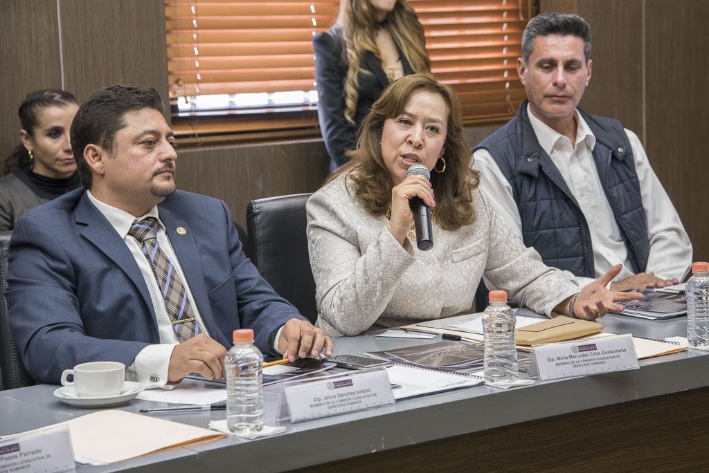 Durante la reunión, la diputada Perla Guadalupe Monroy Miranda (PRI) preguntó a Elena Robles qué falta por precisar en materia de derechos humanos, y la diputada Aide Flores Delgado (PRI) consultó a Jesús Romero sobre su principal compromiso con los derechos humanos y sus objetivos de resultar electo.