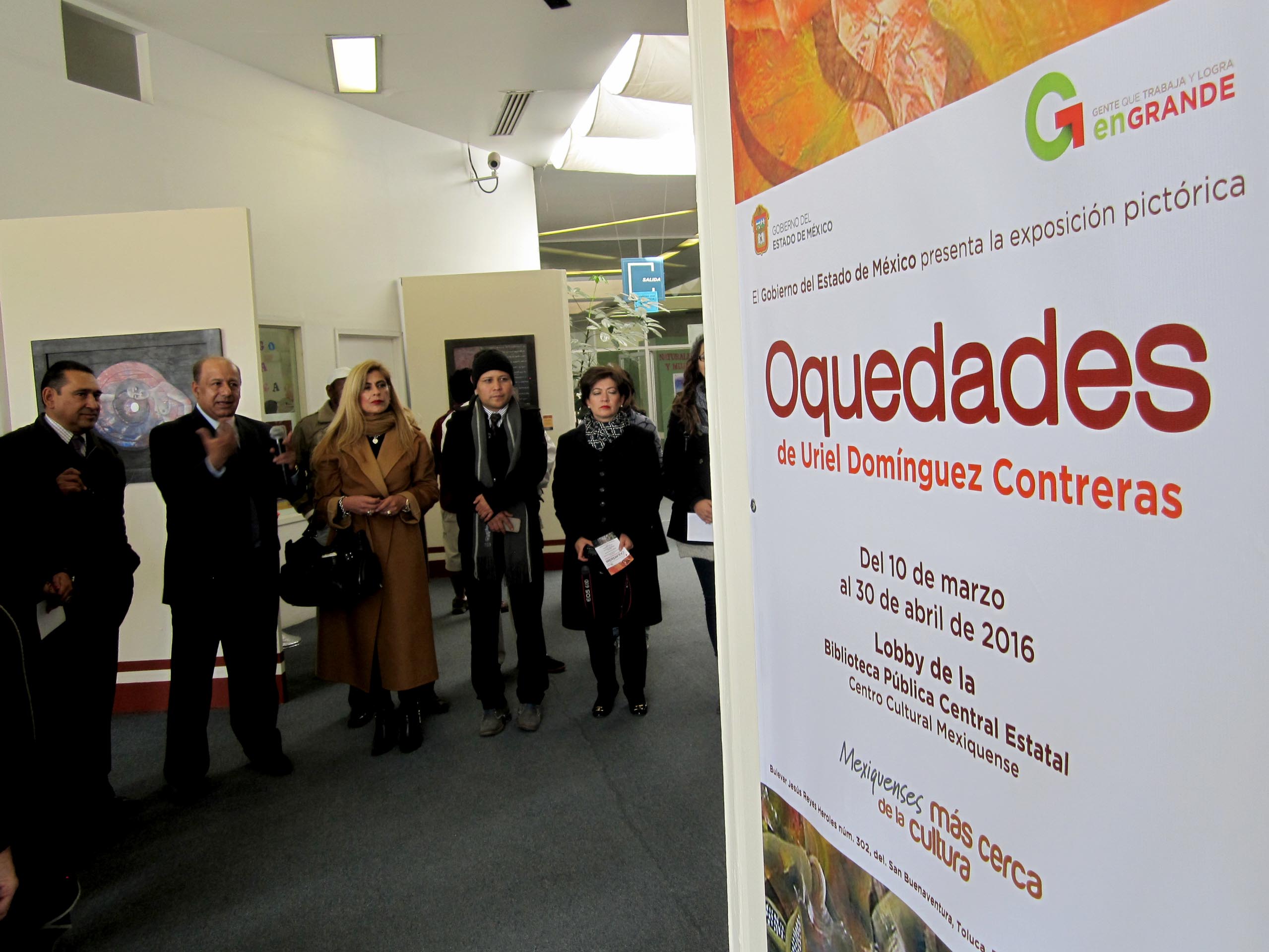 Asimismo inauguró la exposición Oquedades de Uriel Domínguez Contreras, que es una combinación de materiales como la pintura al óleo con pintura vinílica sobre madera y sobre la que el artista comentó que: “esta muestra simboliza de manera creativa la belleza, valor e importancia de la mujer como eje central de nuestra civilización y de nuestra sociedad latinoamericana. Es una reflexión del papel que tiene la mujer ante los embates que ha sufrido a través de todos los tiempos mediante las costumbres, tradiciones e inequidades con las que sigue enfrentándose. No se trata de dignificar su figura, sino de reconocer sus valores y su importancia como ente en cada ocasión que conquista más terreno y exige, de manera consciente, una situación de igualdad ante un varón en referencia a todo”.