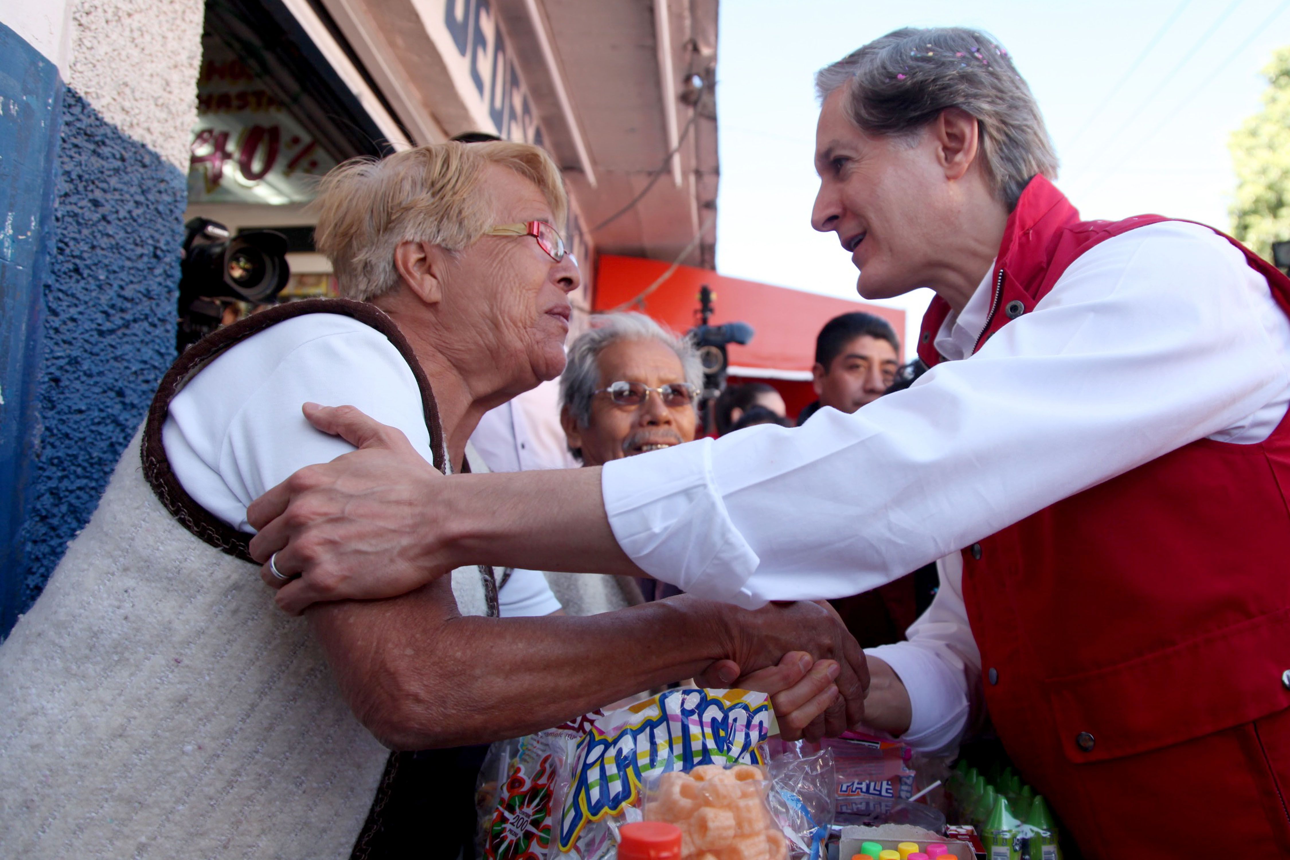 En la caminata, tanto Adrián Pedroza como Ricardo Moreno, el primero de una tienda de abarrotes y el segundo de la carnicería La Ranchera, le expresaron a Alfredo Del Mazo que la seguridad es una de sus principales demandas y también le manifestaron que es la primera vez que un candidato tiene esa cercanía con la gente.