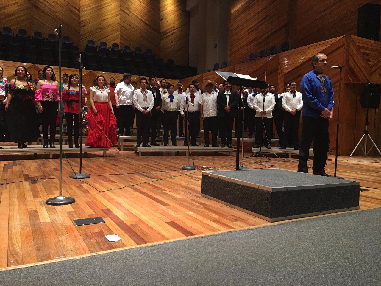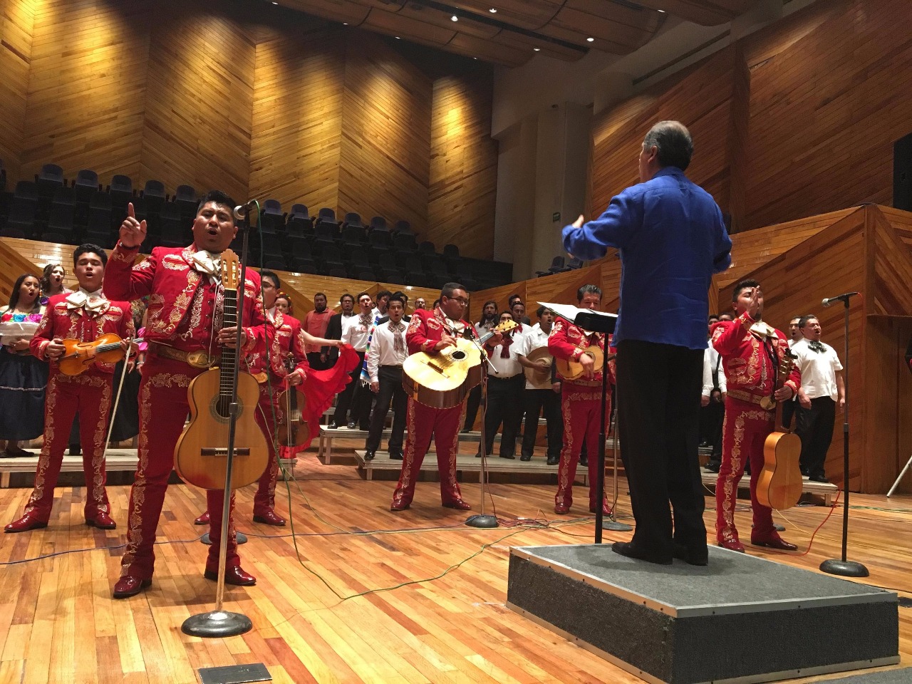 Toluca, Estado de México, 2 de octubre de 2018. Como parte de la gira que realiza el Coro Polifónico del Estado de México, en su segunda temporada, se presentó en la Sala de Conciertos “Felipe Villanueva”, junto con el Mariachi Villa Real de Calimaya, donde el público disfrutó de un repertorio de música mexicana.