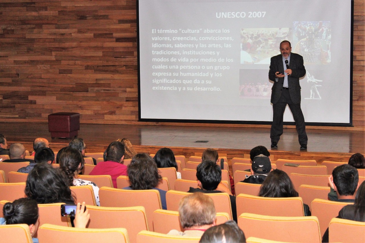 Toluca, Estado de México, 23 de octubre de 2018. Congregados en el auditorio del Museo “Torres Bicentenario”, servidoras y servidores públicos de la Secretaría de Cultura estatal y gente del medio cultural, acudieron a la conferencia “La formación de promotores culturales para la paz”, dictada por José Antonio Mac Gregor.
