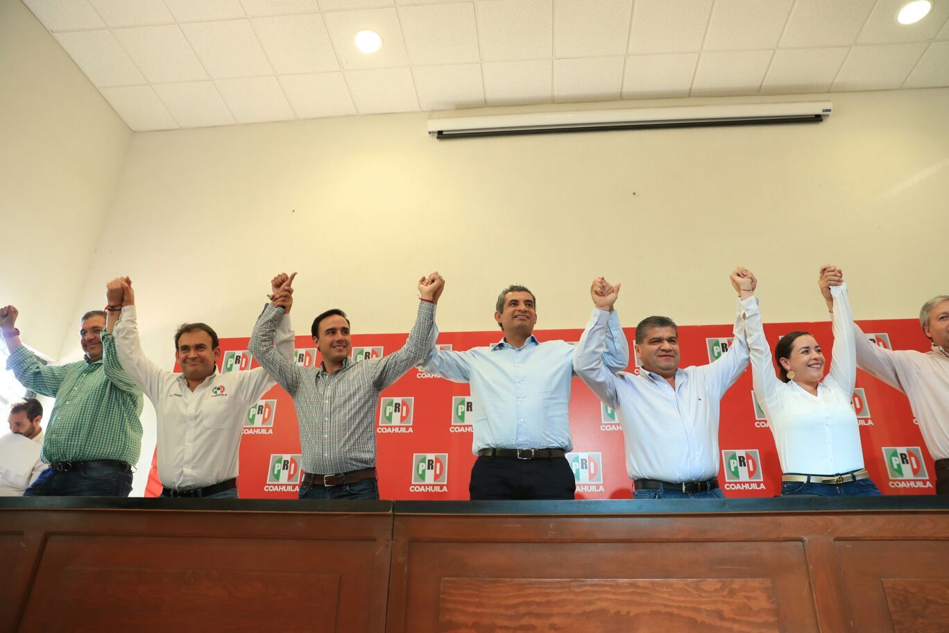 Pronunciamiento del Dr. Enrique Ochoa Reza, presidente del CEN del PRI, durante la conferencia de prensa que encabezó junto a Miguel Ángel Riquelme Solís, candidato del PRI al gobierno del estado de Coahuila, en Saltillo, Coah., el jueves 8 de junio de 2017.