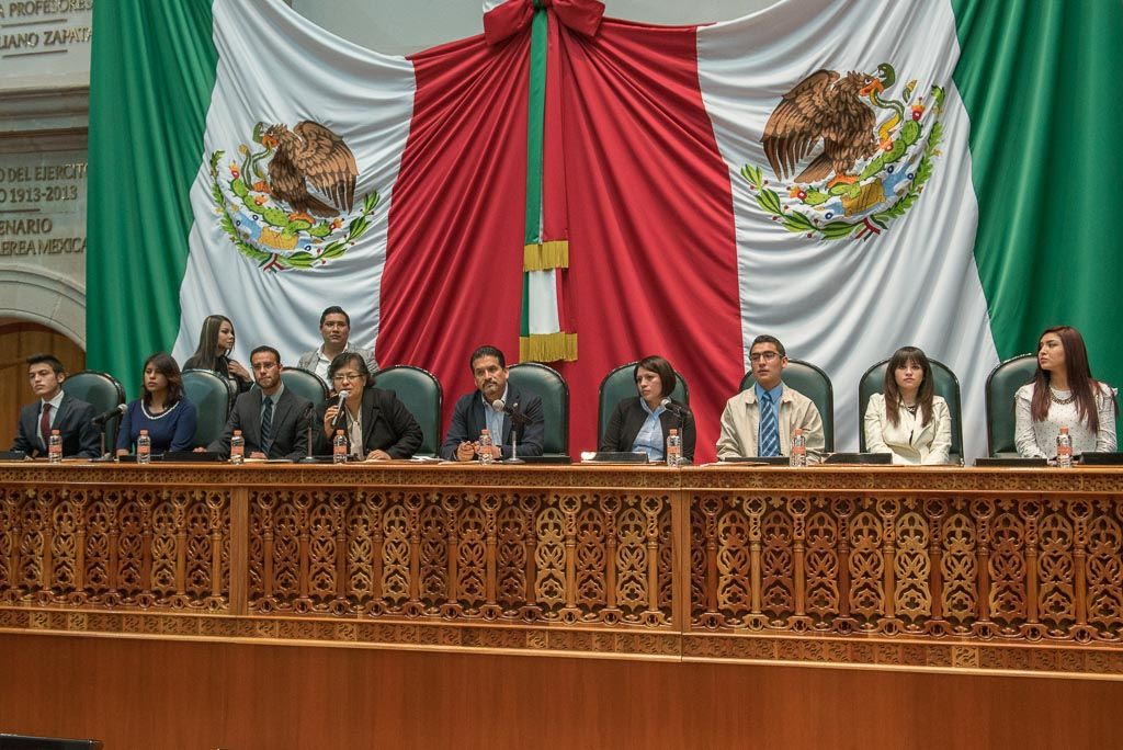 Ante Itzel Citlalli Urbina Peña, Diana Cristina Avilés de la Cortina, Karla Irazel González Rivera, Pavel Osvaldo García Villagómez, Larissa Yazmín Rivera Flores y Gamaliel Martínez Díaz, integrantes de la Directiva, Blanca Ivonne Romero Sánchez, representante de Grupo ISIMA, y Maribel Sánchez López, de la Universidad Tres Culturas, agradecieron al diputado por permitir a los estudiantes conocer y participar en el proceso legislativo.