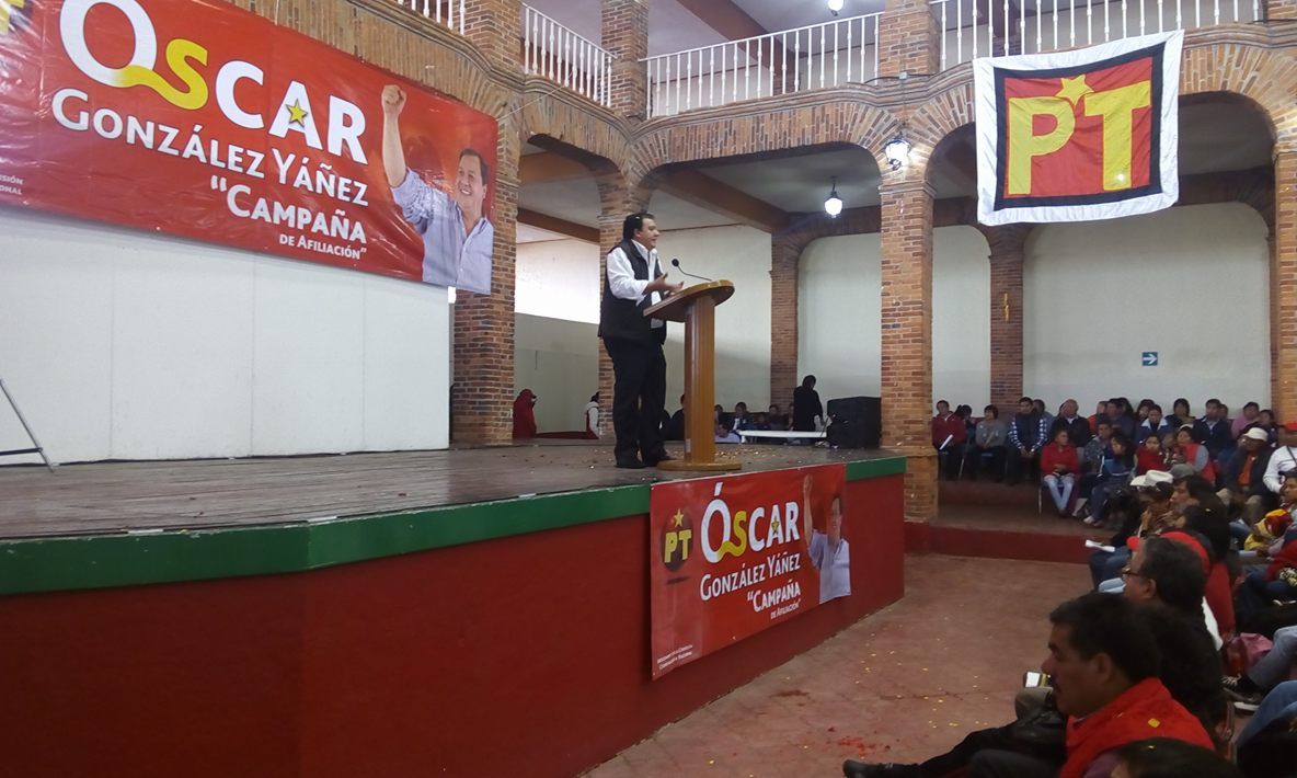 El Partido del Trabajo en el Estado de México inició su campaña de afiliación con miras a la contienda que se vivirá en el 2017 y poder estar en las mejores condiciones de afrontar el proceso electoral, con la suma de todos sus miembros, donde el líder moral y consejero nacional, Oscar González Yáñez hizo un llamado a la unidad.En su discurso sostuvo que el PT es una fuerza social importante que ha estado vigente a lo largo de 25 años, del lado del pueblo y sosteniendo que el país, el estado y los municipios tienen que cambiar para mejorar, para crear las condiciones ideales para la ciudadanía y no para beneficio de unos cuantos.