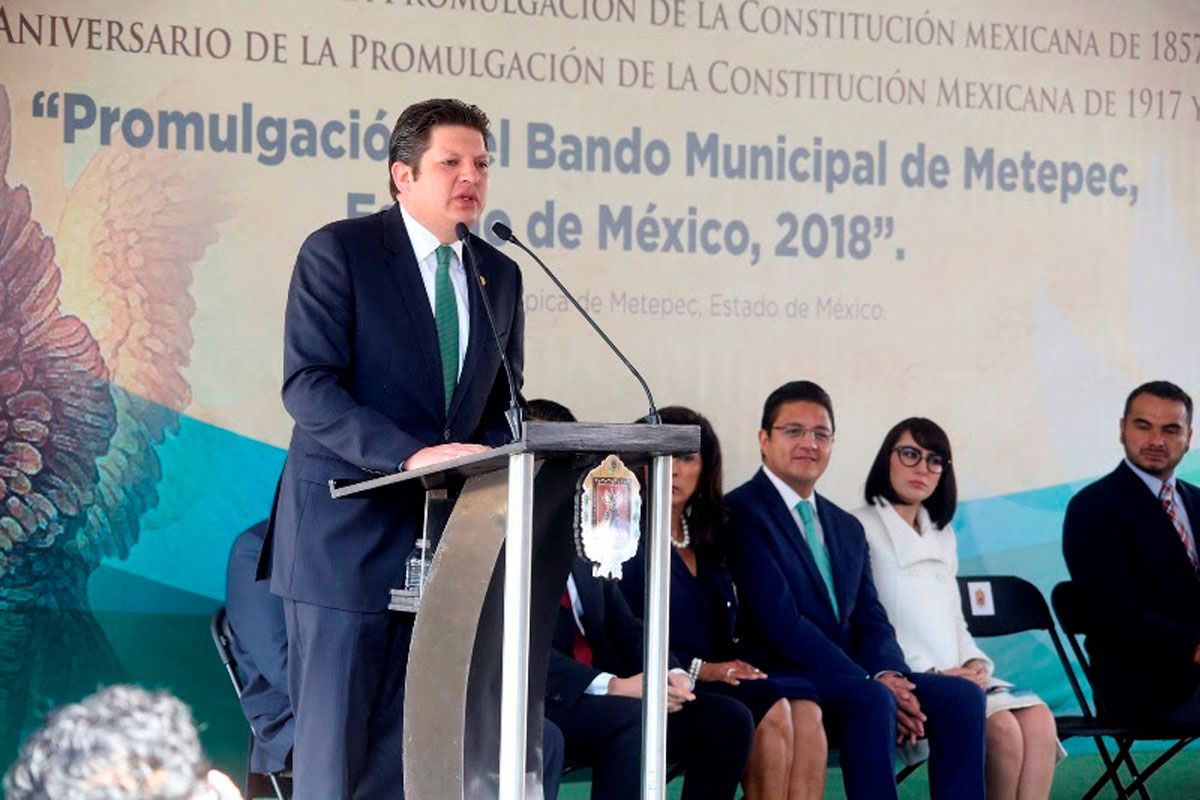Metepec, México.- Fomentar la civilidad a través de valores, establecer las bases que generen condiciones de igualdad de género y de respeto de los derechos humanos, así como incentivar el desarrollo y crecimiento urbano con orden al igual que garantizar la transprencia en el ejercicio público, fueron algunos de los temas que actuializados que contiene el Bando Municipal de Metepec 2018, el cual fue publicado este día por el alcalde David López Cárdenas e integrantes del ayuntamiento.