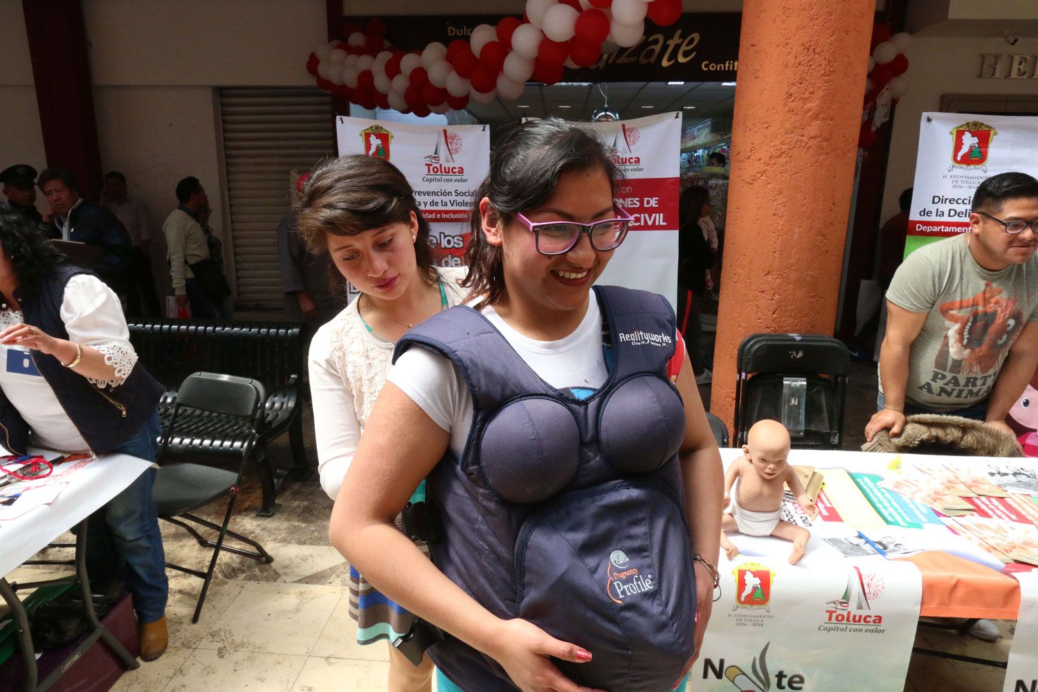 Por su parte, Diana Paola, que cursa el segundo grado de secundaria, acompañada de su mamá, Juana Ocaña, se acercó a uno de los módulos donde le colocaron un simulador con el peso que carga una mujer embarazada, al retirárselo dijo estar segura de querer concluir una licenciatura antes de convertirse en mamá.