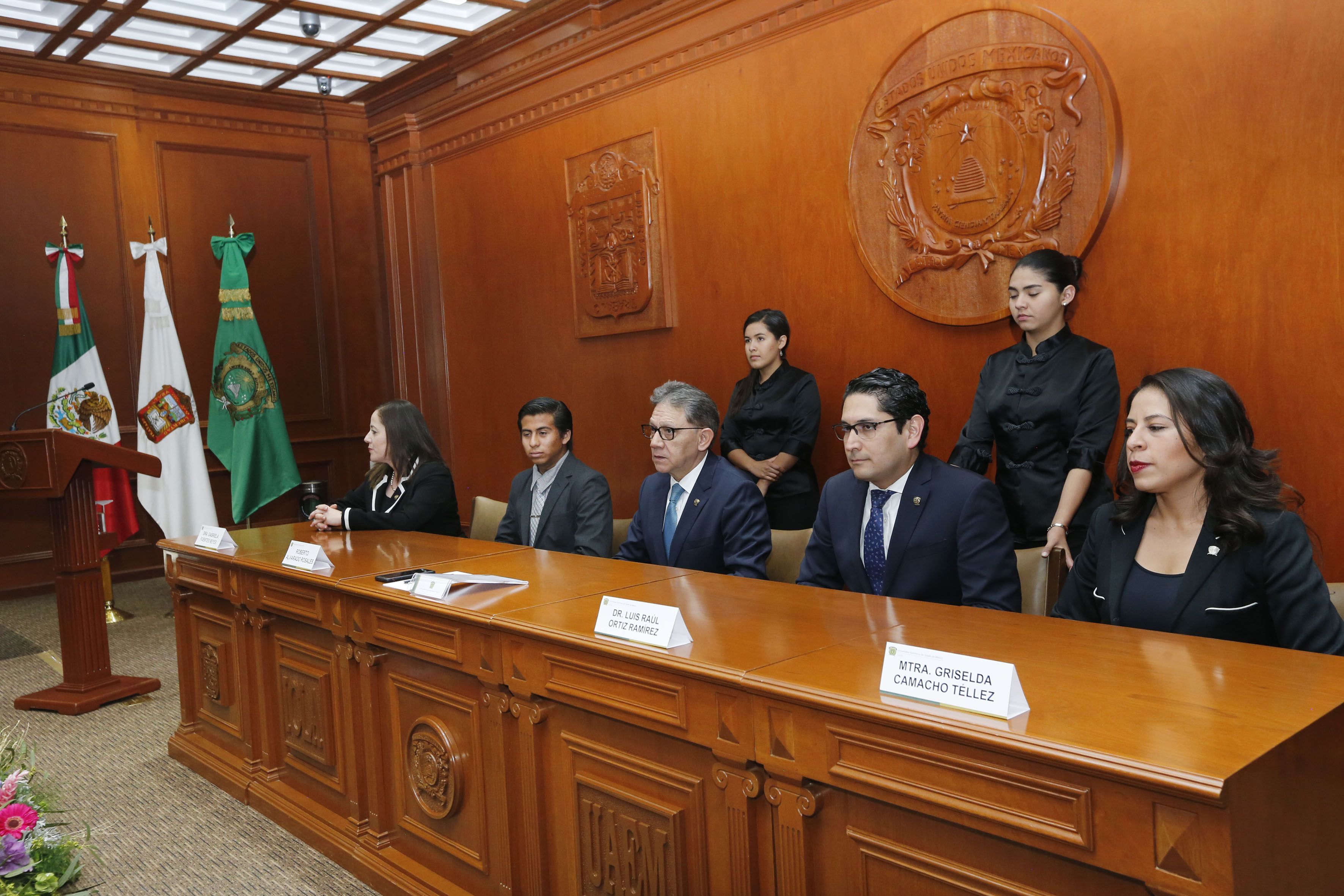 Acompañado del titular de la Secretaría de Rectoría, Luis Raúl Ortiz Ramírez, y la abogada general de la institución, Gabriela Fuentes Reyes, refirió que la implementación de este programa se realiza de manera coordinada con la Secretaría de Seguridad y la Fiscalía General de Justicia del Estado de México.