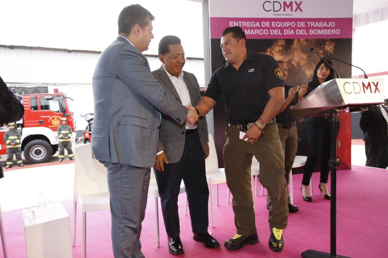 El H Cuerpo de Bomberos de la CDMX recibió equipamiento con un valor superior a los 150 millones de pesos consistente en equipos personales y de rescate, ambulancias, minibombas, vehículos de rescate, camionetas utilitarias y equipadas, entre otros, con una calidad superior a la de países del primer mundo.