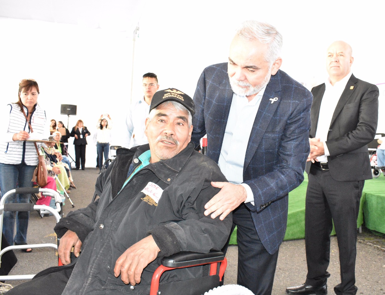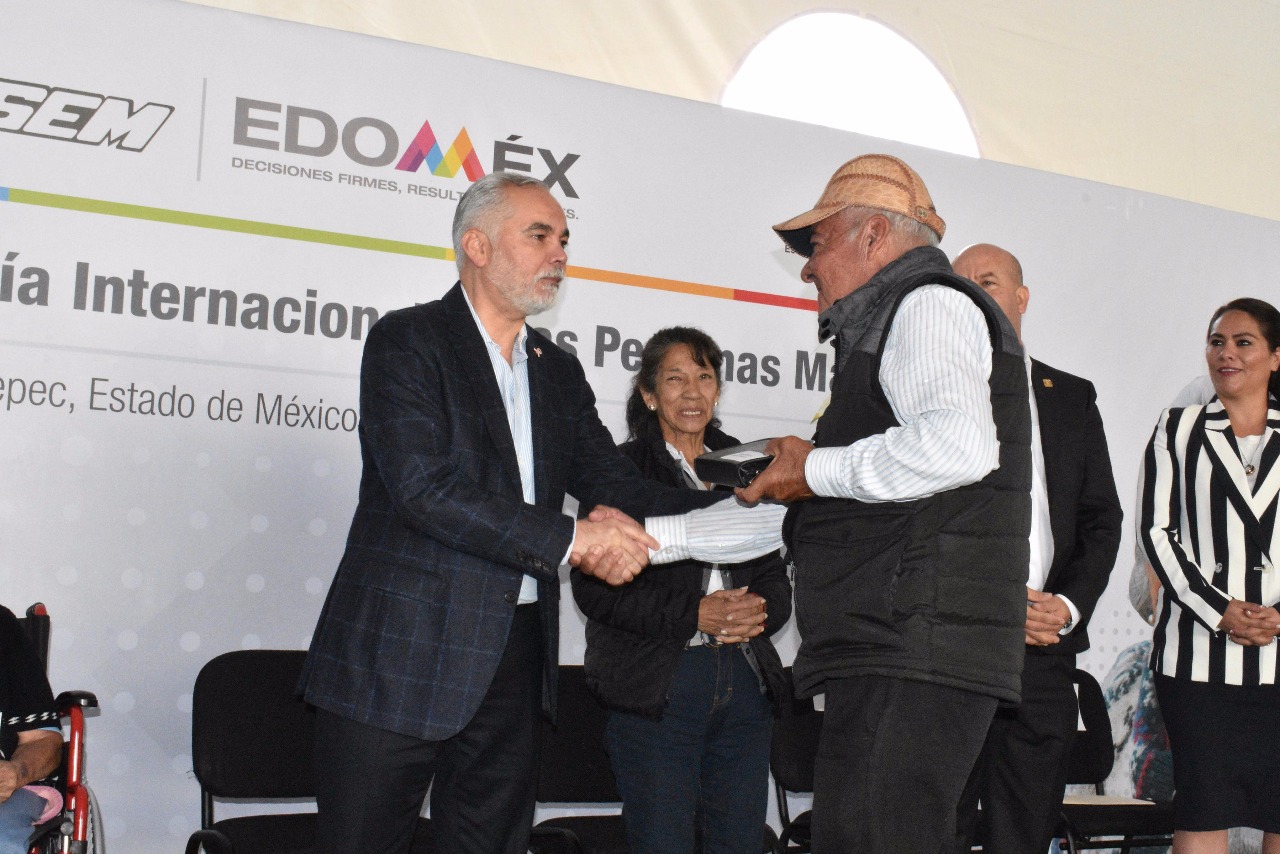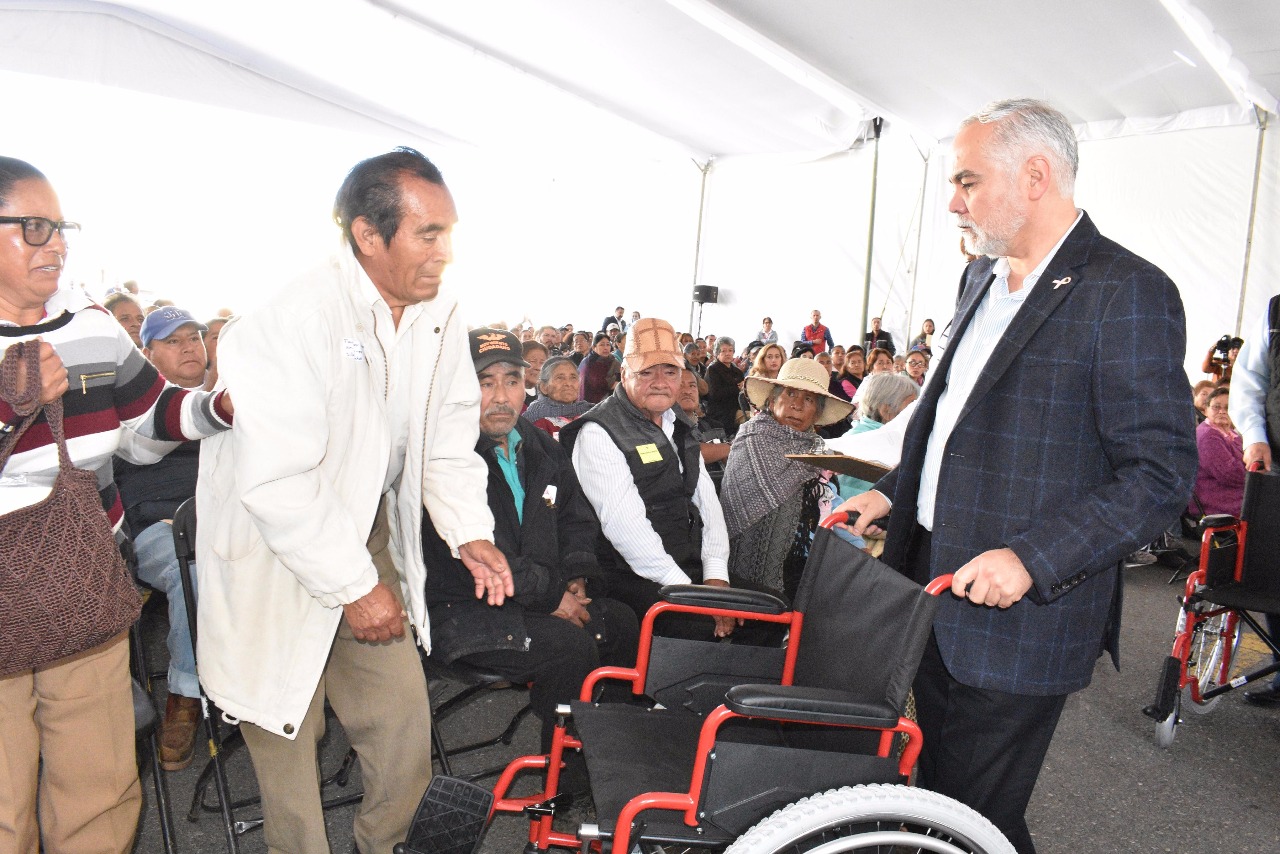En la Clínica de Atención Geriátrica de Metepec, las autoridades de Salud entregaron 58 sillas de ruedas, 32 andaderas, 15 pares de muletas, 66 bastones y 23 prótesis dentales completas a personas de mayores de 65 años que habitan en los municipios de Chalco, Lerma, Almoloya de Juárez y Temoaya.