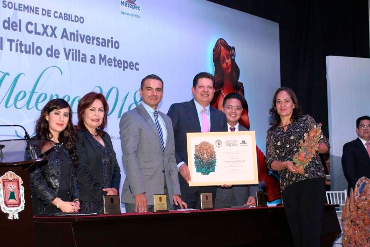 “Hoy, como hace 170 años, agradecemos y recordamos a los integrantes del Congreso del Estado de México de 1848 y a los gobernadores Francisco M. de Olaguibel y Mariano Arizcorreta por el otorgamiento del Título de Villa al Pueblo de Metepec. Entregamos este galardón a personas que se han destacado por sus actos, obras, conducta, ciencia, profesión u oficio, así como por actividades relevantes que representan un beneficio para la sociedad metepequense”, señaló David López Cárdenas.