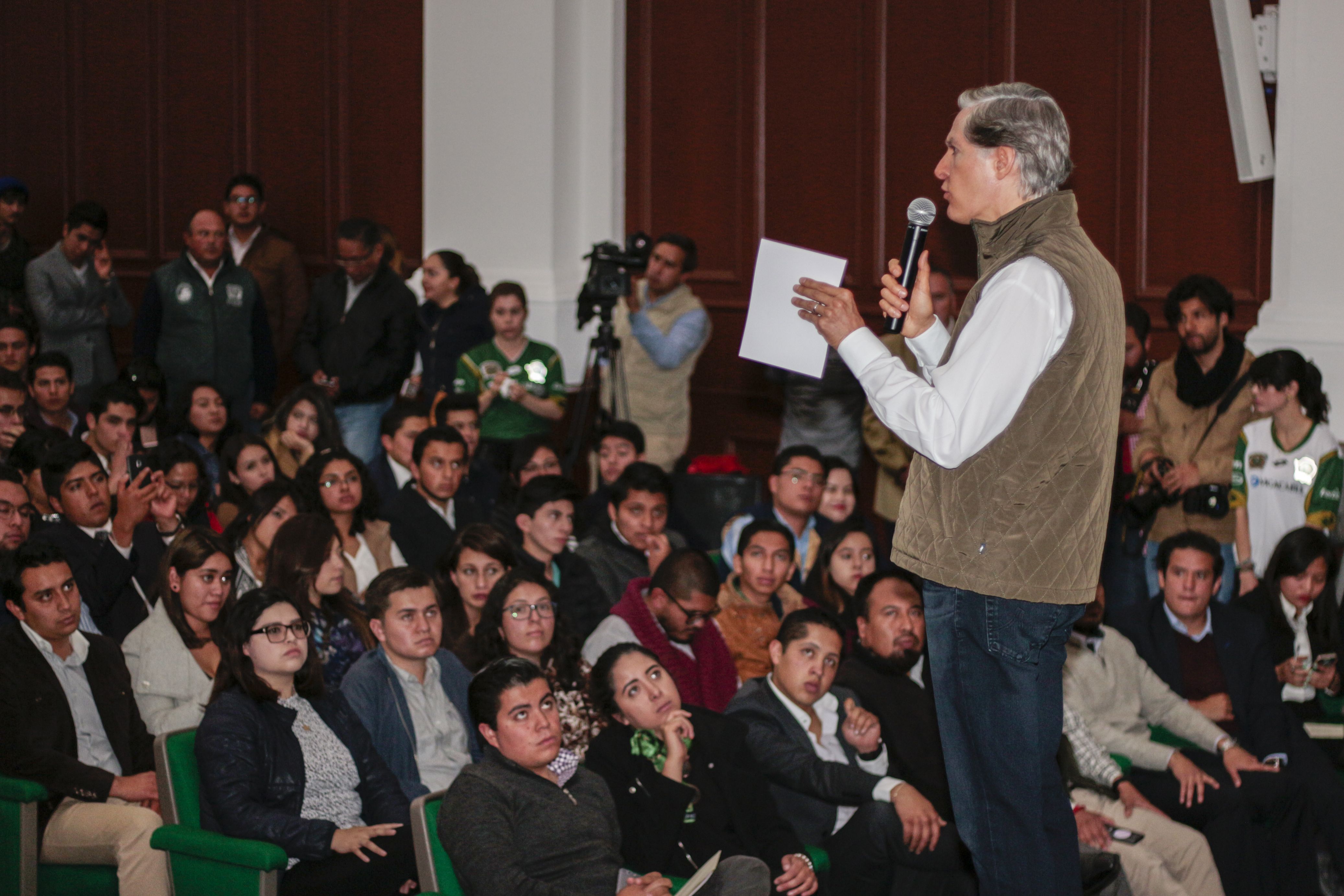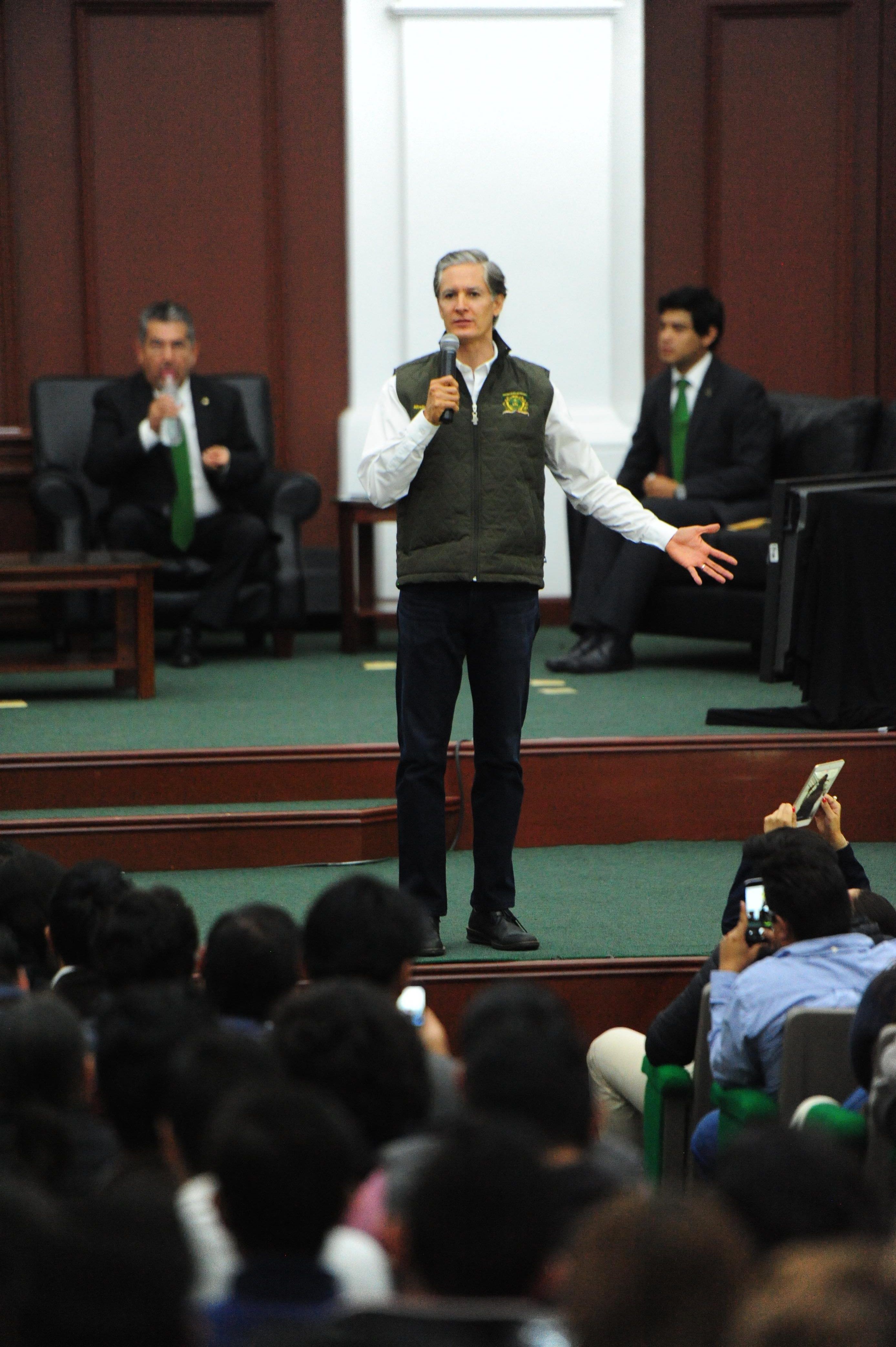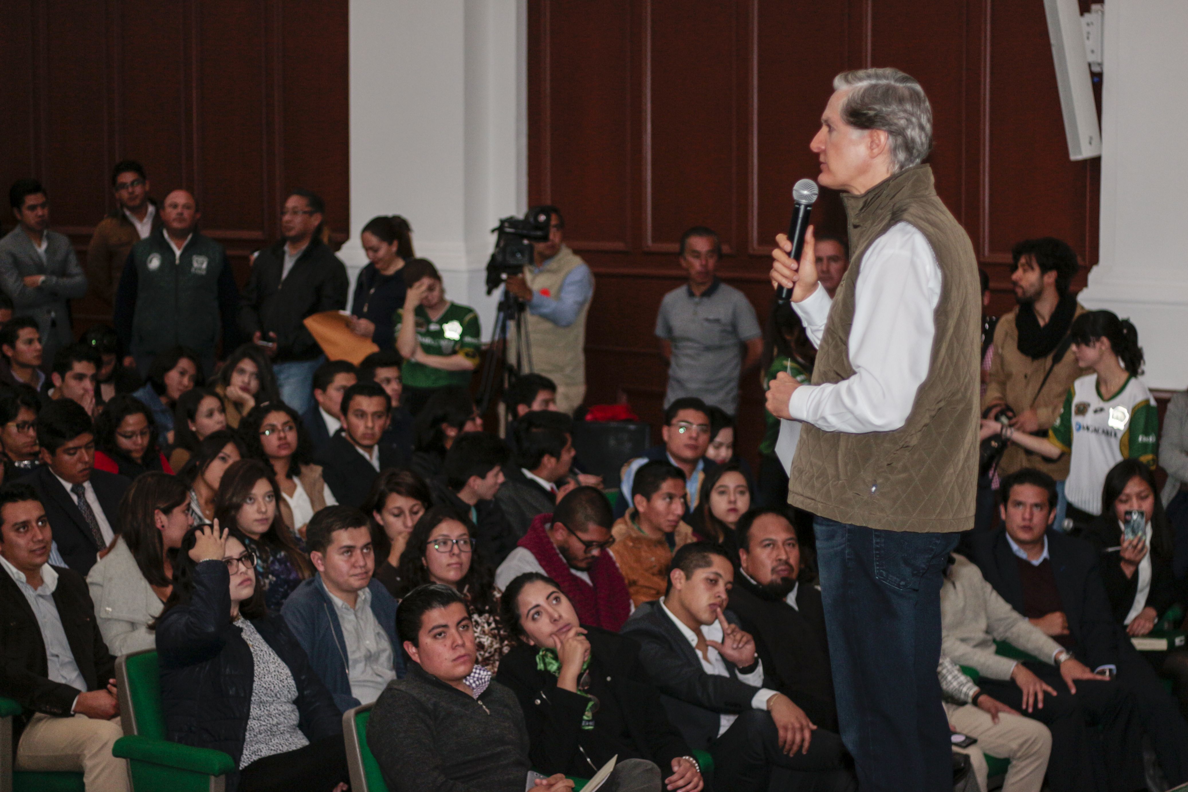 Después de escuchar los logros de esta institución en los ámbitos académico, político, deportivo y cultural, y que la colocan entre las 10 mejores del país y la segunda a nivel nacional en investigación, Del Mazo respondió a las preguntas de la comunidad verde y oro.