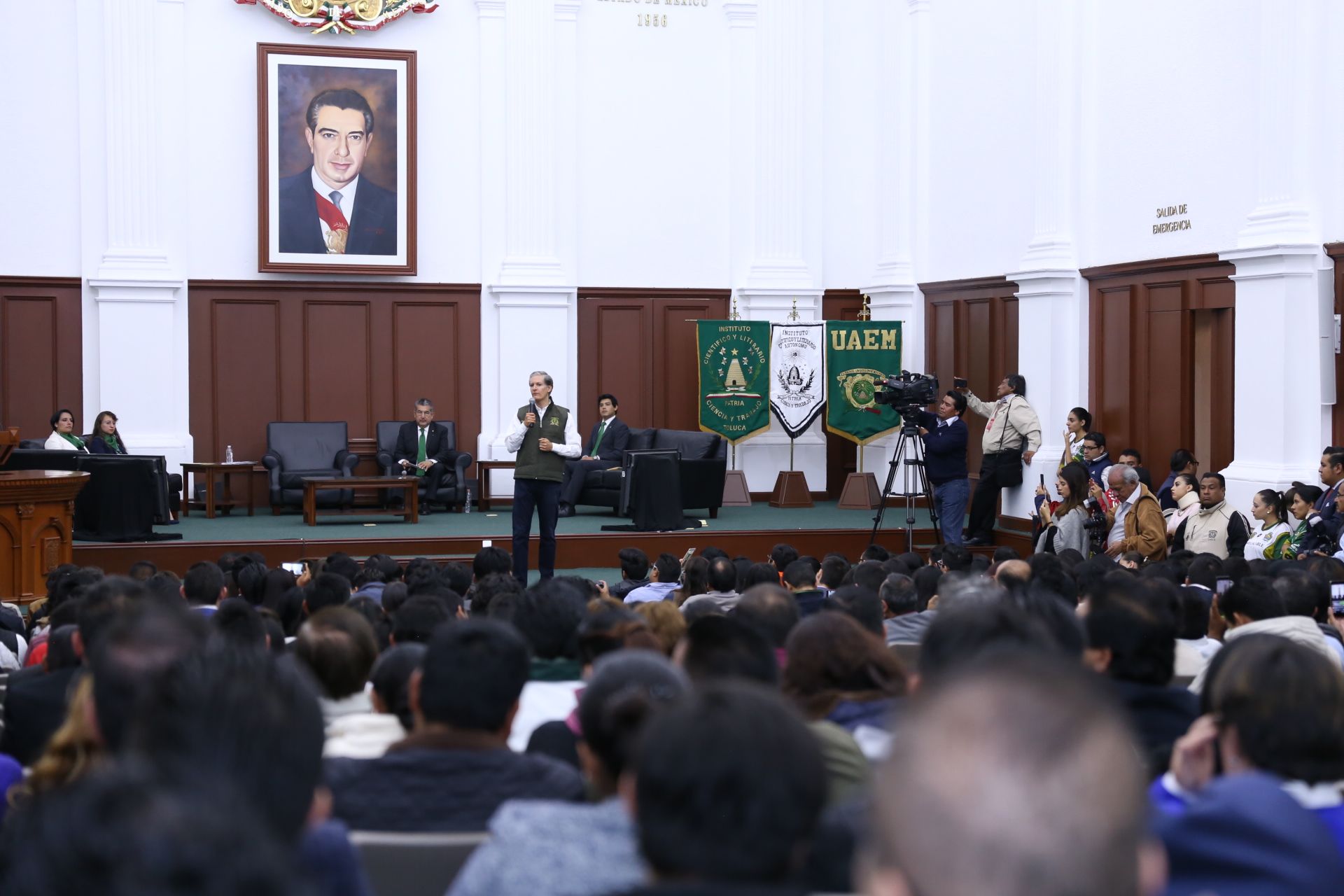 En su encuentro con la comunidad de la Universidad Autónoma del Estado de México (UAEM), destacó cinco compromisos con la Máxima Casa de Estudios: