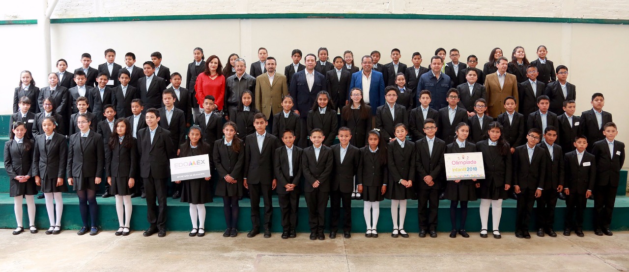 Toluca, Estado de México, 2 de noviembre de 2018. Como un reconocimiento a su preparación académica y esfuerzo por concluir su educación primaria, la Secretaría de Educación entregó estímulos a 72 estudiantes que integraron la delegación estatal que participó en la Olimpiada del Conocimiento Infantil 2018.