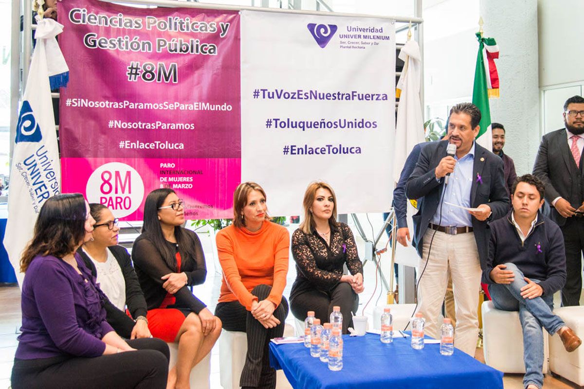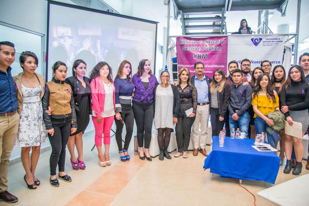 Lo anterior, durante el evento conmemorativo del Día Internacional de la Mujer, organizado por estudiantes de la licenciatura en Ciencias Políticas y Gestión Pública de la Universidad Univer Milenium, donde destacó que hay avances importantes, pero persisten los obstáculos para acceder a la educación, discriminación laboral y feminicidios.