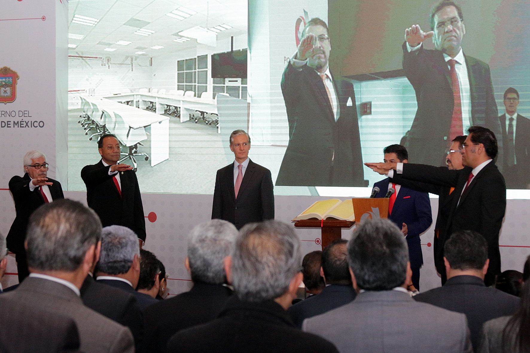 En este evento también estuvieron presentes el Fiscal General de Justicia estatal, Alejandro Gómez Sánchez, el Presidente del Colegio Mexiquense, Humberto Benítez Treviño, el Presidente de la Comisión de Derechos Humanos del Estado de México, Jorge Olvera García, el Presidente de la Mesa directiva de la Cámara de Diputados local, Diego Moreno Valle, el Presidente de la Junta de Coordinación Política, Cruz Roa Sánchez, la Presidenta del Voluntariado del Poder Judicial, Isis Martínez Ramos, la Secretaria de Seguridad, Maribel Cervantes Guerrero, el Secretario de Derechos Humanos y Justicia, Rodrigo Espeleta Aladro y los integrantes del Comité Resguardatorio de la Firma Electrónica, quienes este día tomaron protesta.
