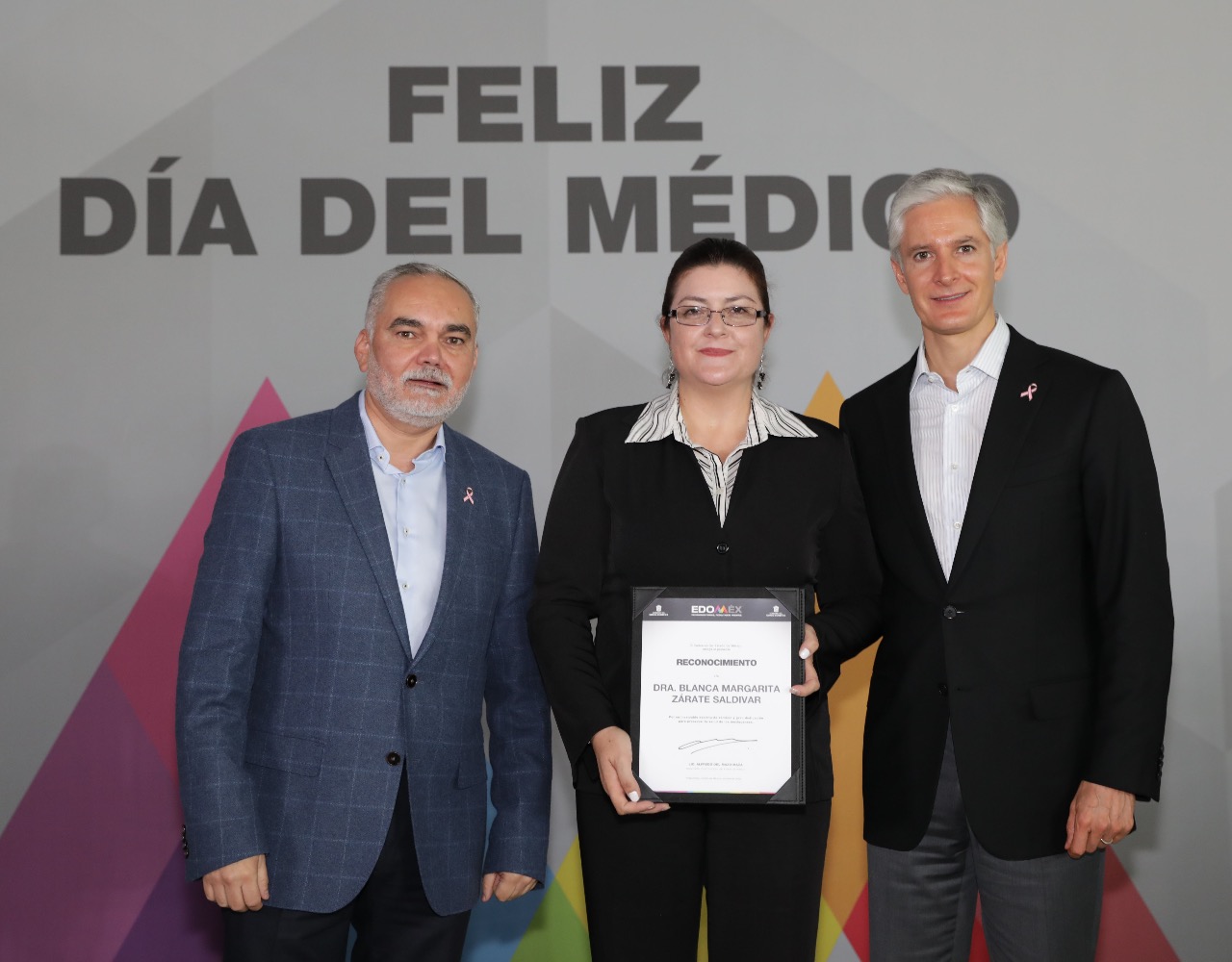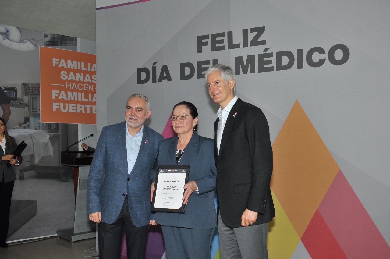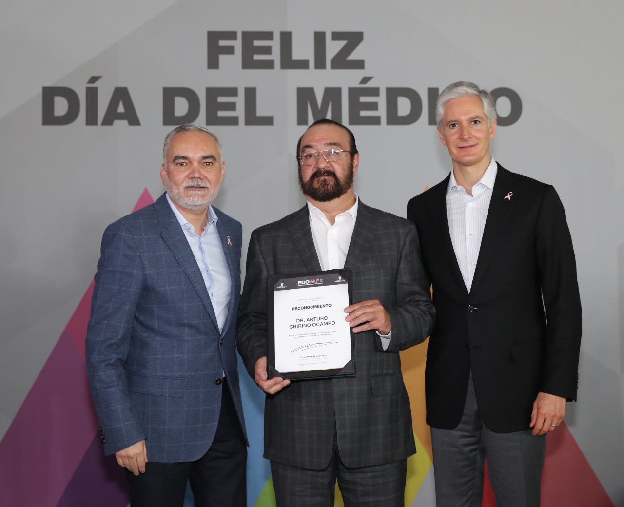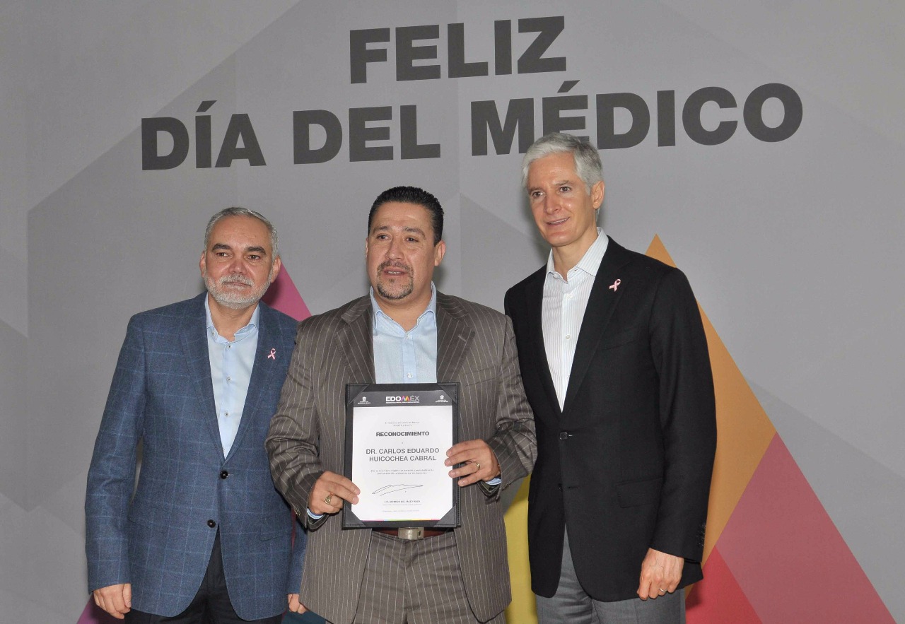 En este evento, el Gobernador y el Secretario de Salud estatal, Gabriel O’Shea Cuevas, entregaron reconocimientos a médicos destacados, de instituciones como la Cruz Roja, el Issemym y el ISSSTE, entre otros, a quienes felicitaron por su trayectoria y dedicación en el cuidado de sus pacientes.