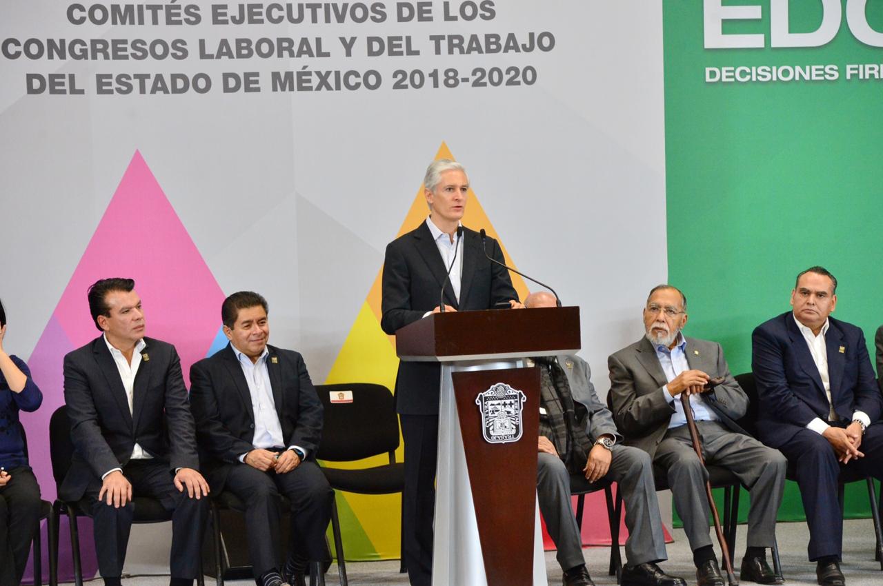 “Hoy que toman protesta los Comités Ejecutivos del Congreso del Trabajo, Delegación Estado de México, y del Congreso Laboral del Estado de México para el periodo 2018-2020, mi gobierno refrenda su compromiso con el sindicalismo mexiquense”, afirmó.
