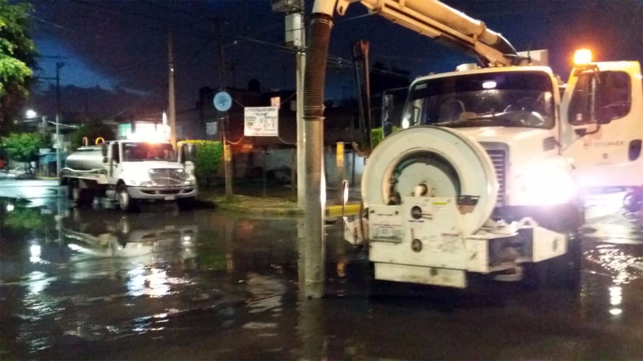 Con el propósito de apoyar a los ayuntamientos en la tarea de proteger a los habitantes y abatir los encharcamientos en el menor tiempo posible, la CAEM trabajó con 61 elementos especializados del Grupo Tláloc, quienes destaparon coladeras, retiraron basura de las alcantarillas y realizaron sondeos en la red de los drenajes municipales.