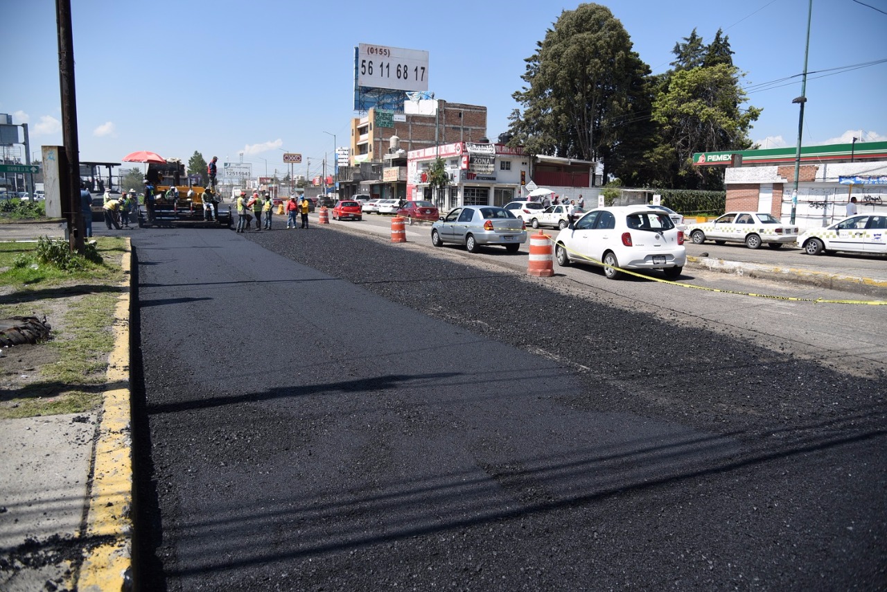 San Mateo Atenco, Estado de México.- La Junta de Caminos del Estado de México realiza trabajos de rehabilitación del Bulevar Aeropuerto, en el tramo de Las Torres y Paseo Tollocan, para mejorar la circulación por la arteria.