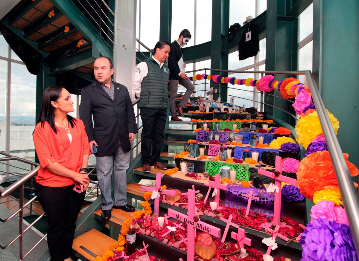 Durante el recorrido con motivo del Concurso de Ofrendas por el “Día de muertos”, con las que se busca generar sentido de pertenencia, identidad, recreación y creación de la cultura, dijo que al abordar los temas de feminicidio, trata de personas, muerte de periodistas, migrantes, crímenes de odio y situación del sistema penitenciario, se invita a reflexionar y sensibilizar a la población.