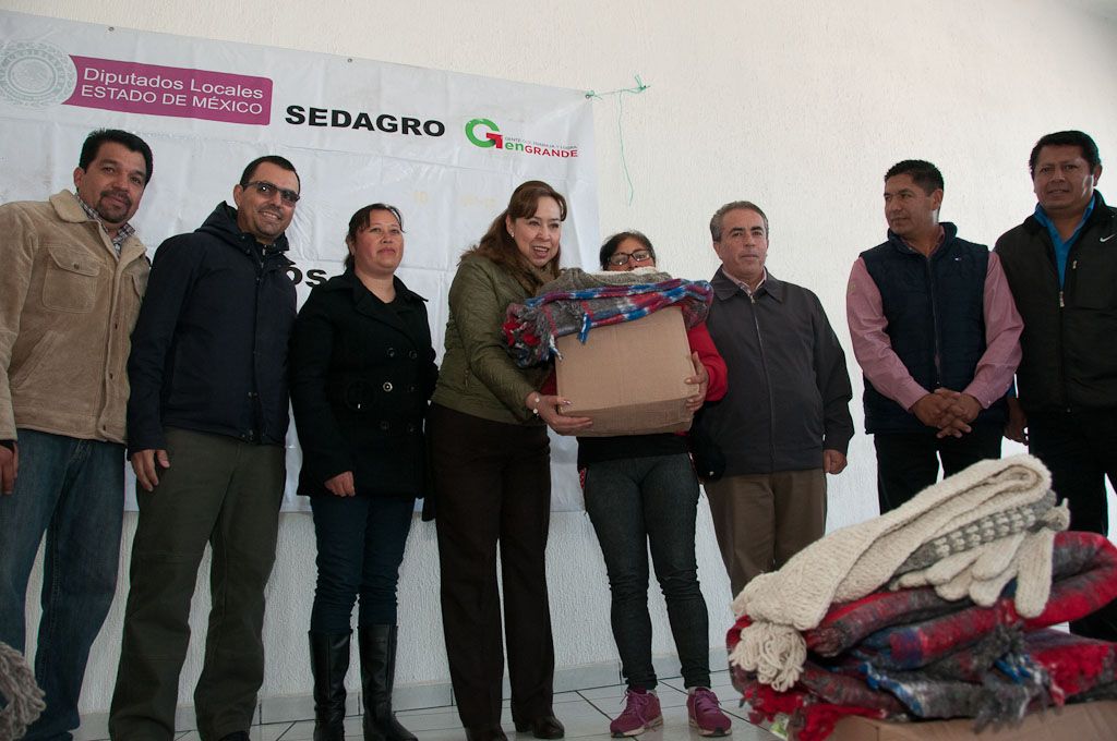 Para que las personas puedan protegerse de las bajas temperaturas que se han presentado en esta temporada, la diputada María Mercedes Colín Guadarrama (PRI) distribuyó paquetes de cobijas, guantes, bufandas y gorras en Amanalco, como parte de una gira de trabajo por tres comunidades de este municipio en la que también entregó canastas alimentarias.Acompañada de Ricardo Fabila Guzmán, representante del gobernador Eruviel Ávila Villegas en el municipio y delegado de Probosque región Valle de Bravo, quien destacó el liderazgo de la legisladora, Colín Guadarrama llamó a mantener la unidad y confianza en los gobiernos federal y estatal, que encabezan el presidente Enrique Peña Nieto y el mandatario estatal Eruviel Ávila, respectivamente.